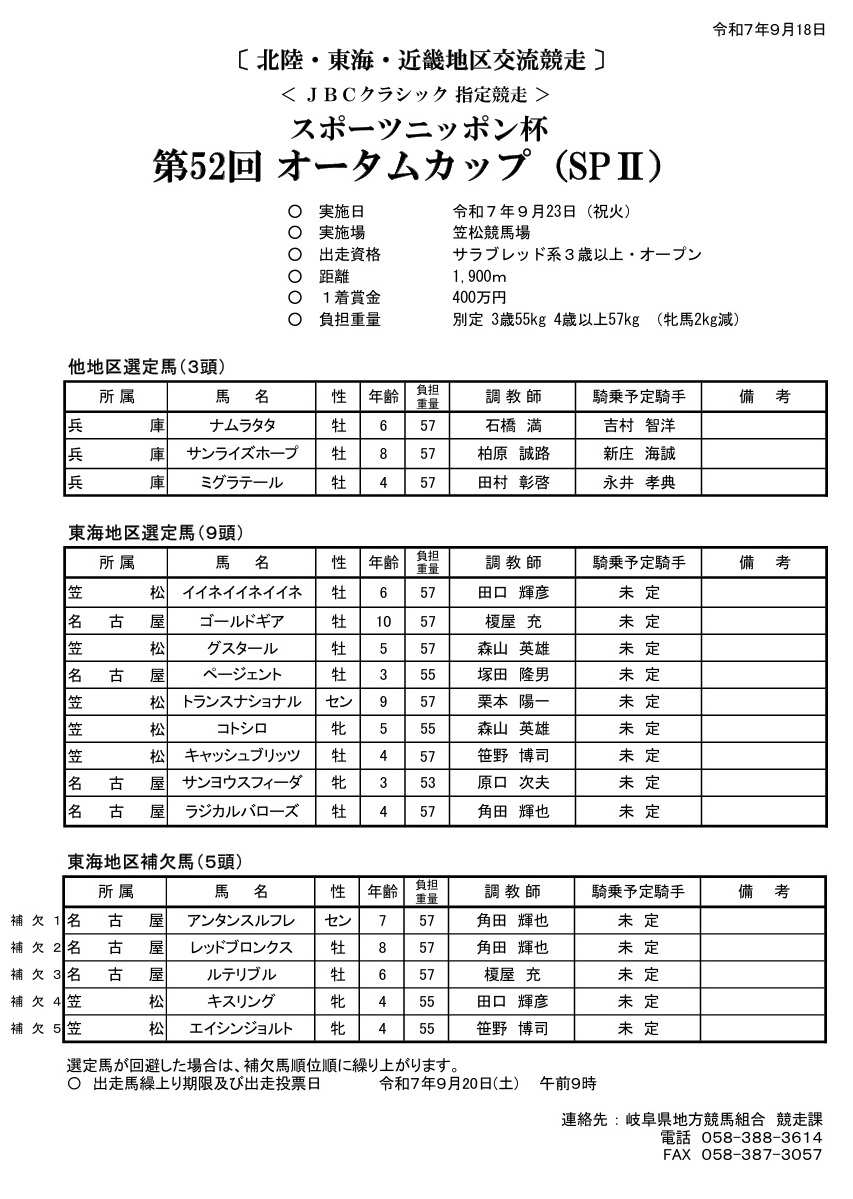 【白山大賞典】(金沢)JRA所属出走申込馬について|競馬実況web|競馬|ラジオNIKKEI【白山大賞典】(金沢)JRA所属出走申込馬について|ラジオNIKKEI:競馬番組www.radionikkei.jp - 31二次元好きの匿名さん25/09/16(火) 08:38:53