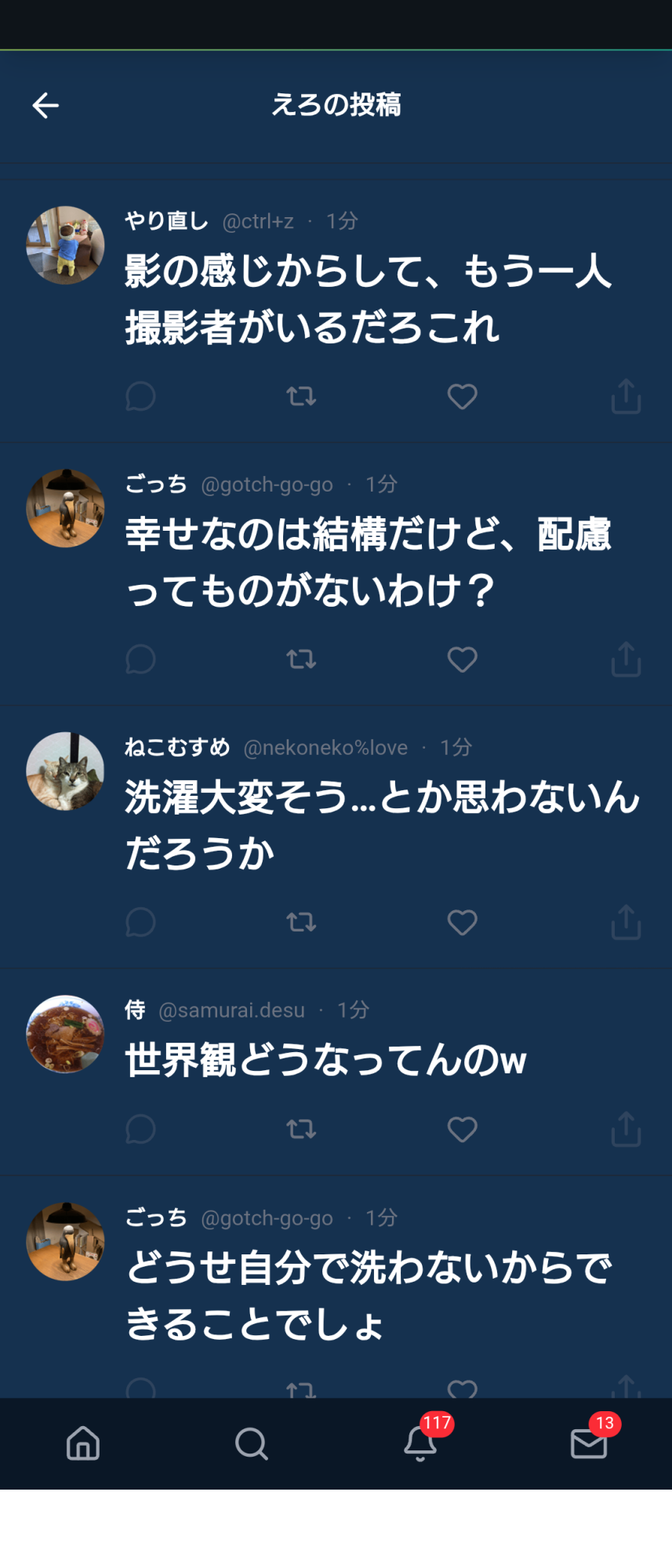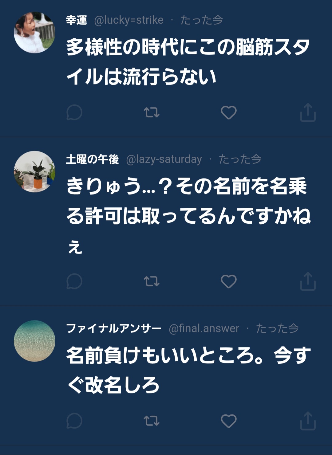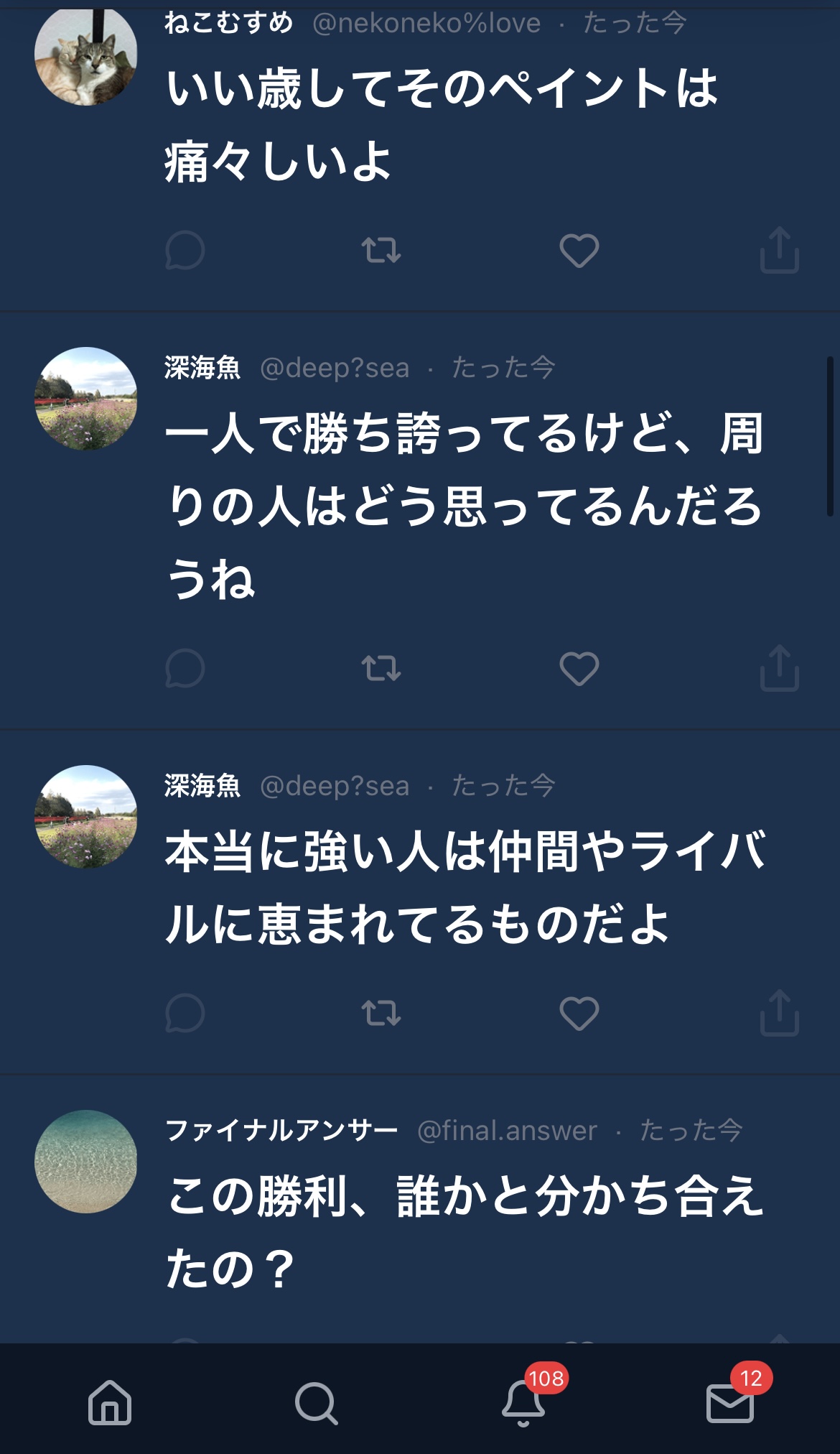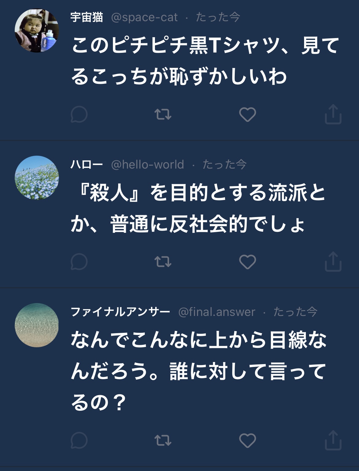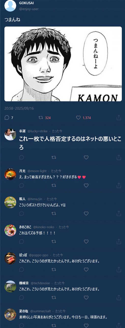 最初の一見平和なタイムラインから炎上までアカウントごとに豹変したりしてるのが細かいんだよね