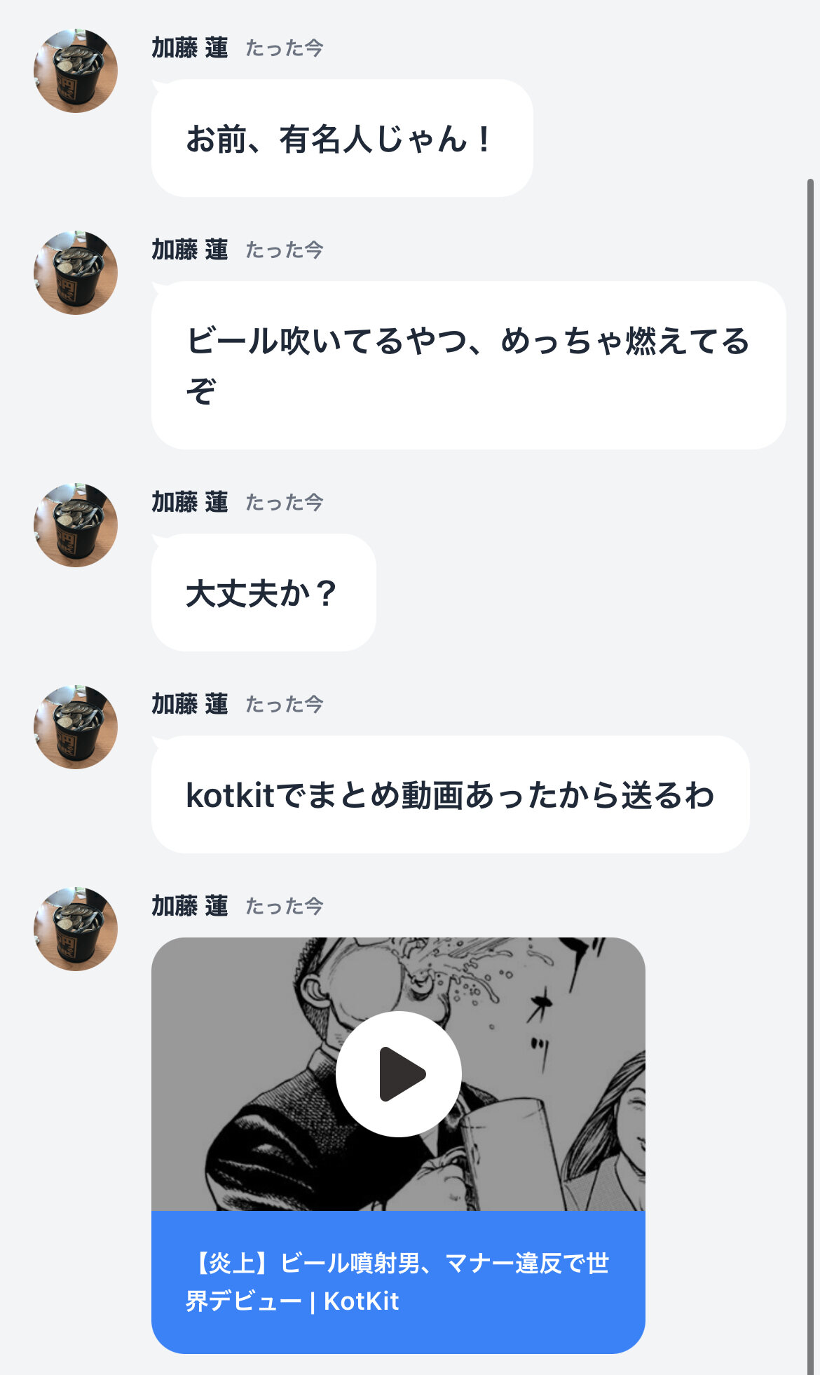まとめ動画とLINEでの身内からの反応まであるのが凝ってておもしれーよ