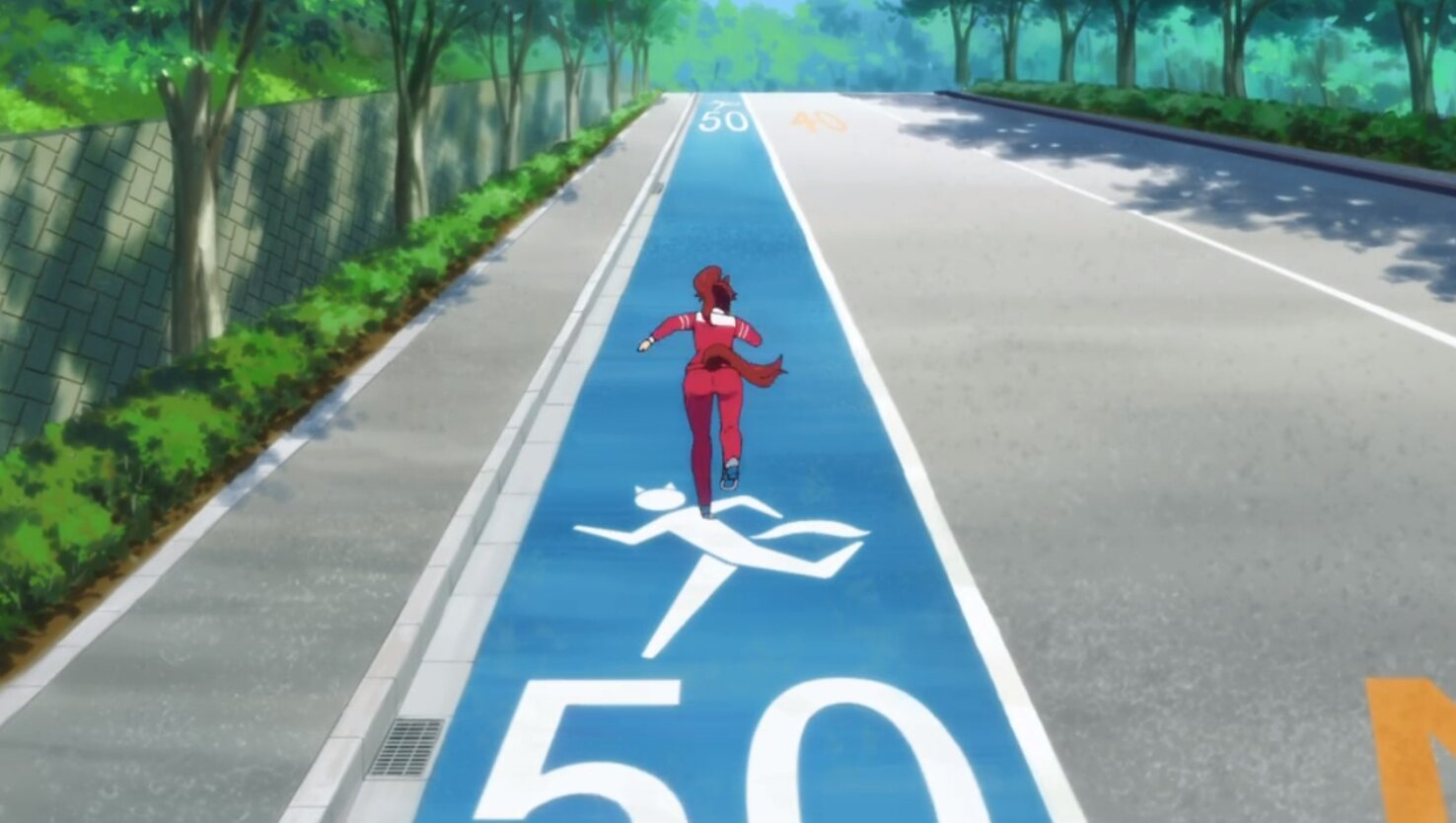 表示の向きからして、車道は片側1車線の対面通行だけどウマ娘レーンは画面奥向きの一方通行だからとか?