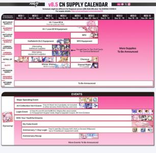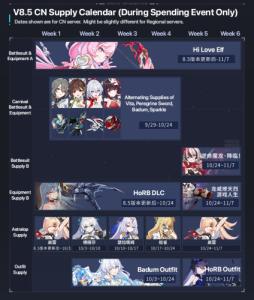 これは本国版、つまり1Ver.先行している中国版崩壊3rdのガチャ予定表。余っ程の事が無い限り他のサーバーも同じスケジュールで動く