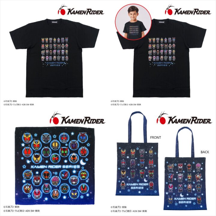 平成の仮面ライダークウガから、最新のゼッツまでの仮面ライダーたちが、かわいいデフォルメイラストでデザインされたアパレル・雑貨アイテムが登場!