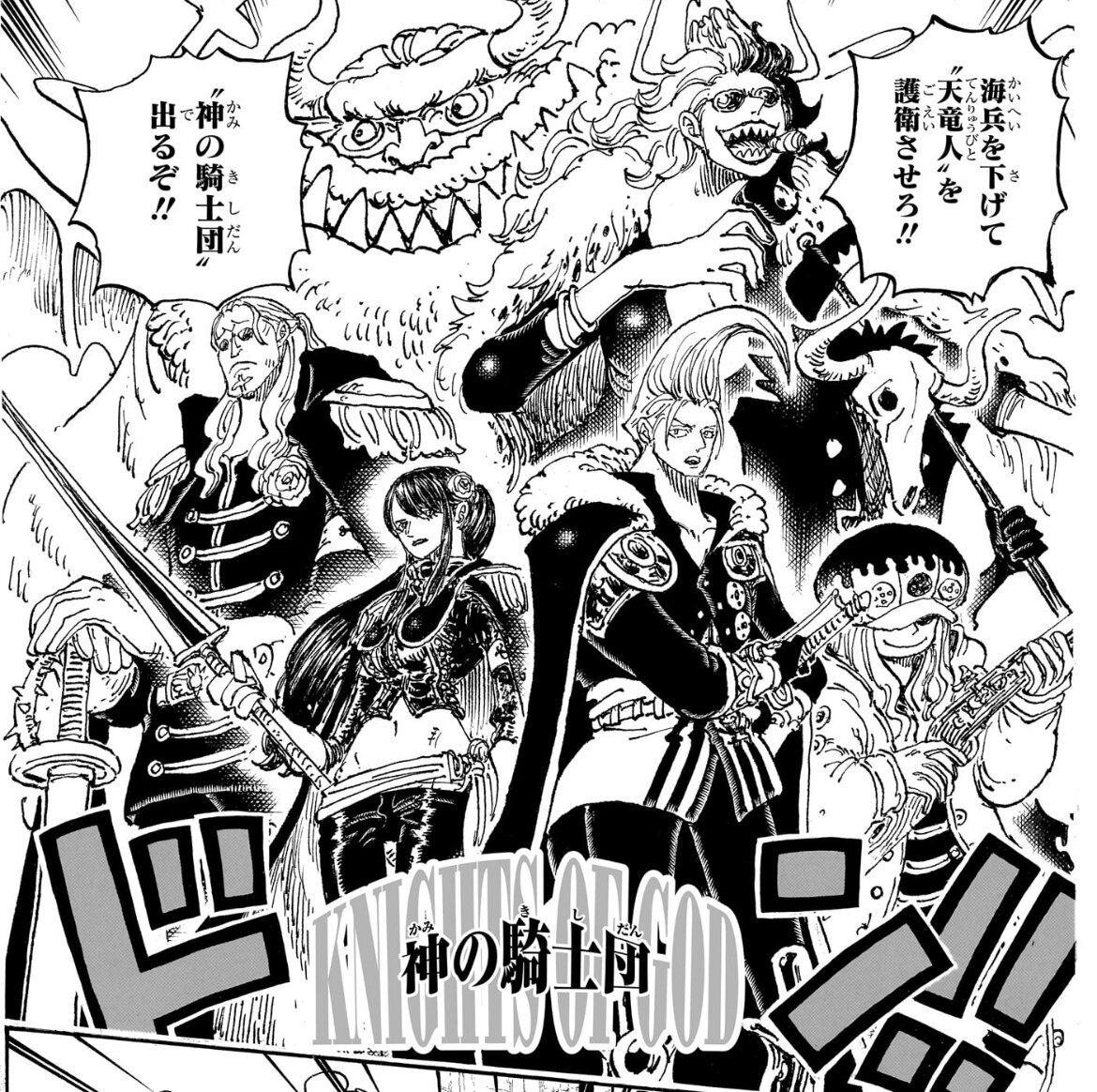 多分海軍やCPじゃ手を出せない天竜人同士のいざこざを解決・裁定するための「神の騎士団」だと思うから天竜人の上位ってのは分かるし