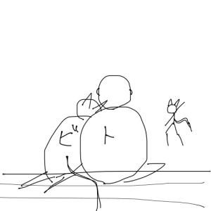 「見ろ、ビリーヴとビリトレだ。仲良く買い物か?大きめの買い物袋を2人で持っているな。あっ袋の揺れで2人の指が触れて光速で離れたぞ。速い。なんというスピードだ」