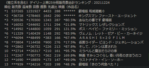 ちなみに鬼滅の初日の興行収入は16億らしいよ