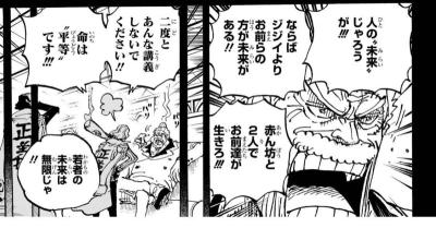カイドウは奪い殺すのが大前提だからマジで本人の言う通り人間の感性してないんだよな、夢追いかけるロジャー系や秩序守るガープ系とは全く違う生物やってる