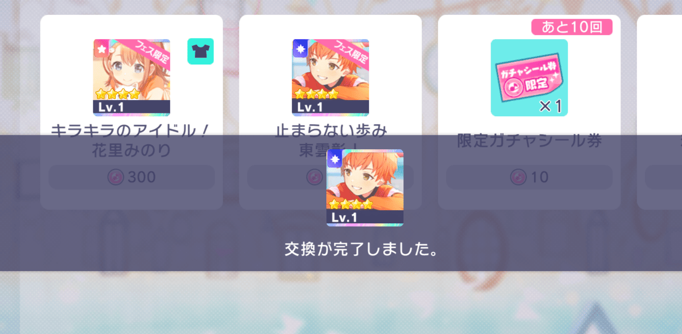 あと遥ちゃんと奏ちゃんがくれば全員1枚は星4がいることになるからフェス奏をピックアップに入れて回してるんだよね
