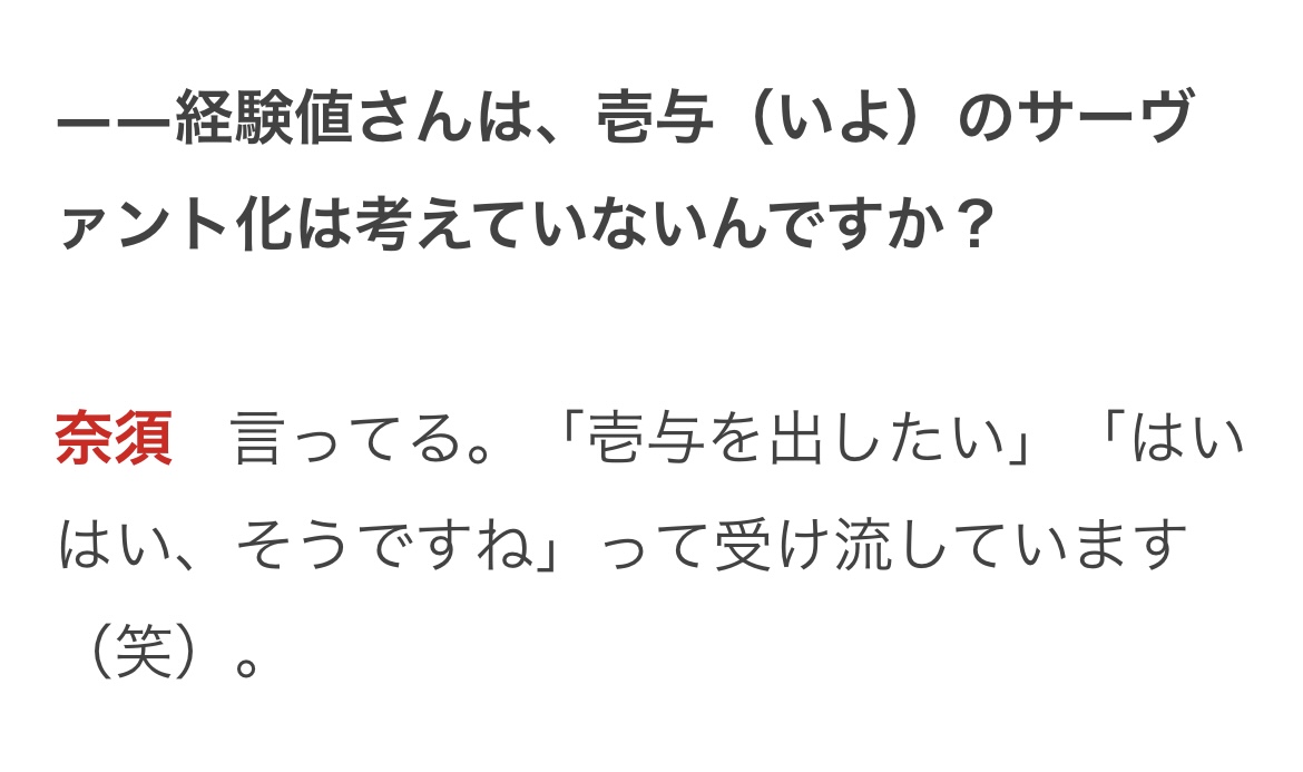 はいはいって流された壱与も再臨思いつかないからやだって3年逃げられた謙信も実装されてるからなんだかんだ経験値の要望通ってるのな