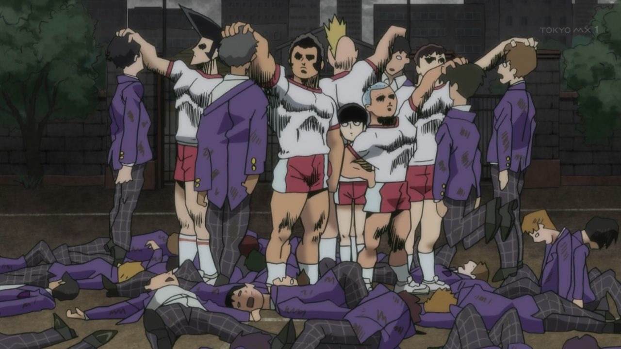 塩中肉体改造部は声を揃え、筋肉の練習ポーズを取って気合を入れる。
