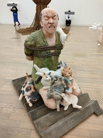 この板の上に座らされるのでも拷問なのにニャンコをモフれないとか
