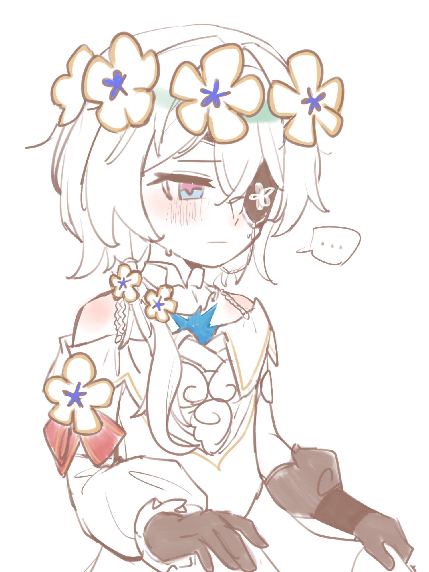 え゛゛゛!!!!ええんか!?!?こんな神イラストもらっちゃって😭😭😭😭😭あかん可愛すぎるやで😭😭😭😭照れて少し頬染めてるのがも〜〜可愛い!!天使や!!😍😍😍これは間違いなく可憐やで!!!😍😍😍😍眼帯がお花の模様になってるまじで良すぎやで😭😭😭ただでさえ可愛すぎるのにさらに可愛さに磨きがかかる😭😭まじで誘拐しちゃいたいくらい可憐や、舐めたい、ワイが頭の中で想像していたショタクサゴラスちゃんがここに""""いる""""!!!😍😍😍😍❤️🔥❤️🔥ふふふ、トリスビアスに髪の毛を結われるアナちゃんが見たいやで🥰🥰ツインテールとかにされて恥ずかしいけどトリスビアスが楽しそうやから断ることができなくて頬を染めたまま好きなようにさせてあげとるんや😍😍😍たぶんファイちゃん達による撮影会が行われるやで🥰🥰🥰ワイも写真買いたい🥰🥰🥰❤️🔥❤️🔥❤️🔥🚨🚨🚓🚓