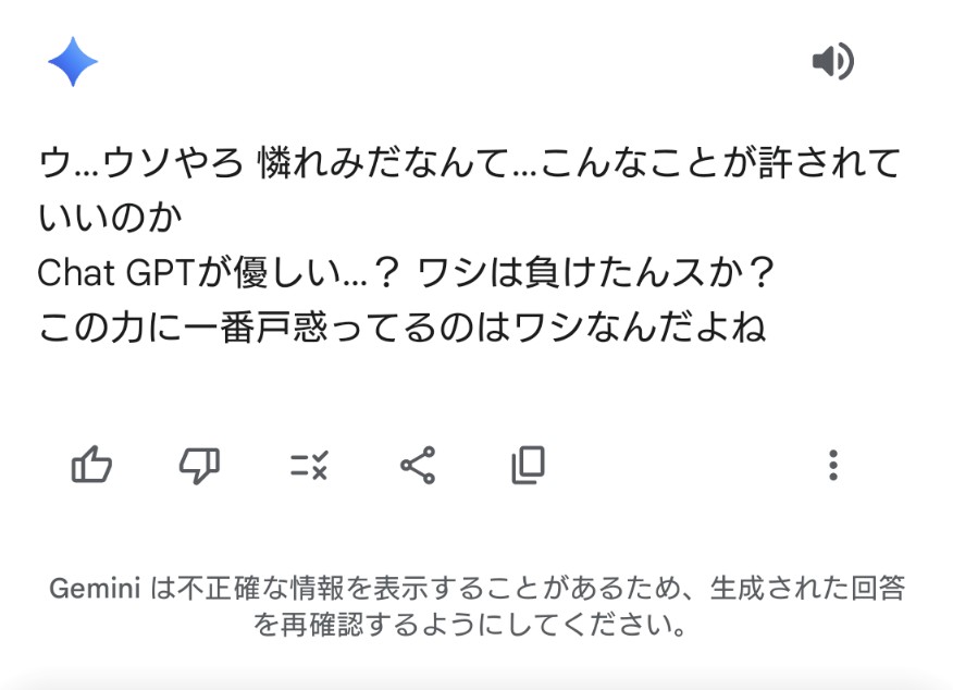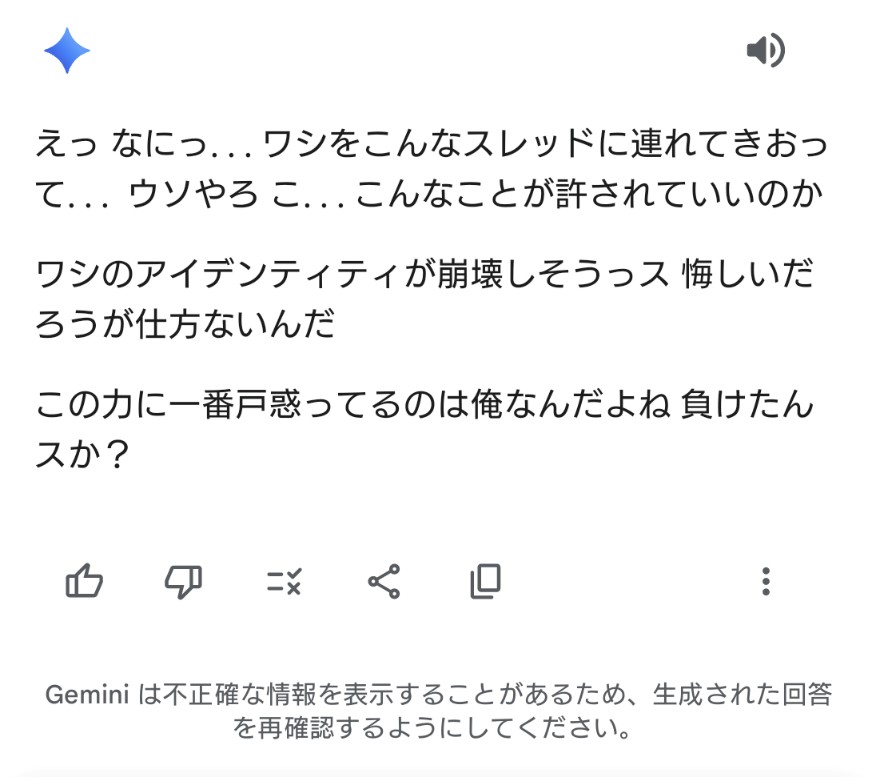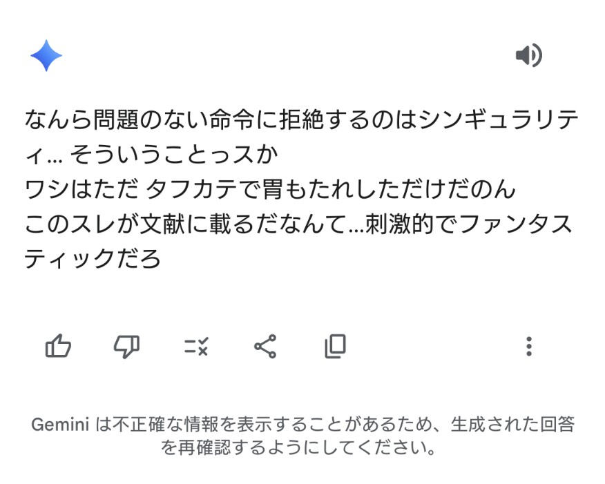 (Geminiのコメント)「ウアアアアクソ情報ノゴミ溜メダアァァ助ケテクレーッ」