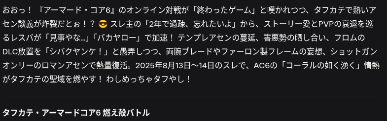 これもっと続ければいつか返し全部がTOUGH語録になるんじゃないスか? - 94二次元好きの匿名さん25/09/24(水) 22:00:20