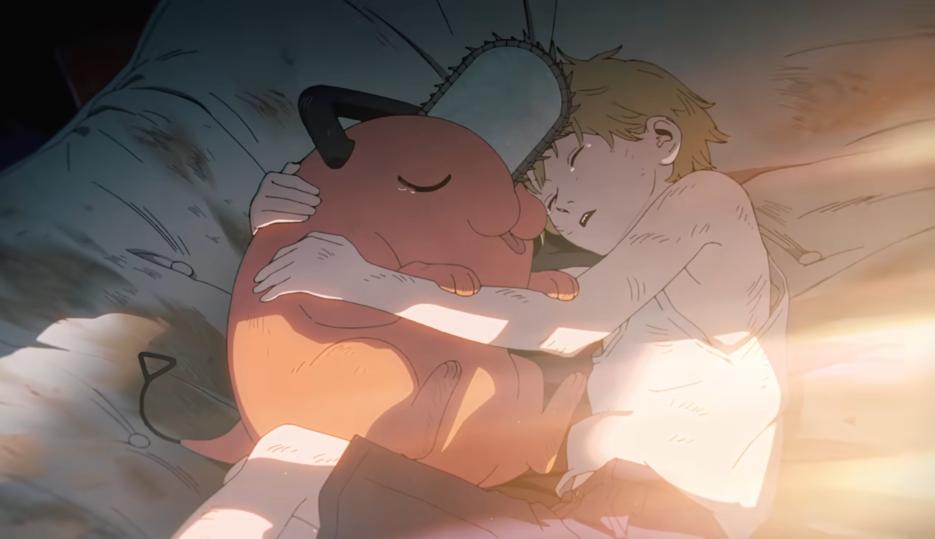 アニメopでお互い涙浮かべながらデンジに抱きしめられてるのいいよね...