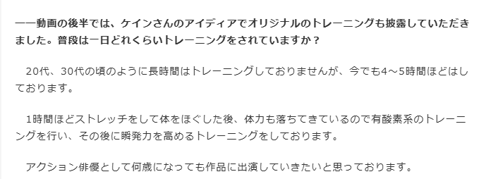 前半だけなら俺でも真似できるかも!っていうトレーニング動画だったんだが、曲のテンポが速くなったあたりから雲行きが怪しくなり、理想の自分をイメージするあたりからついていけなくなり、本能解放後はもうケイン・コスギの動画を見てるだけだった