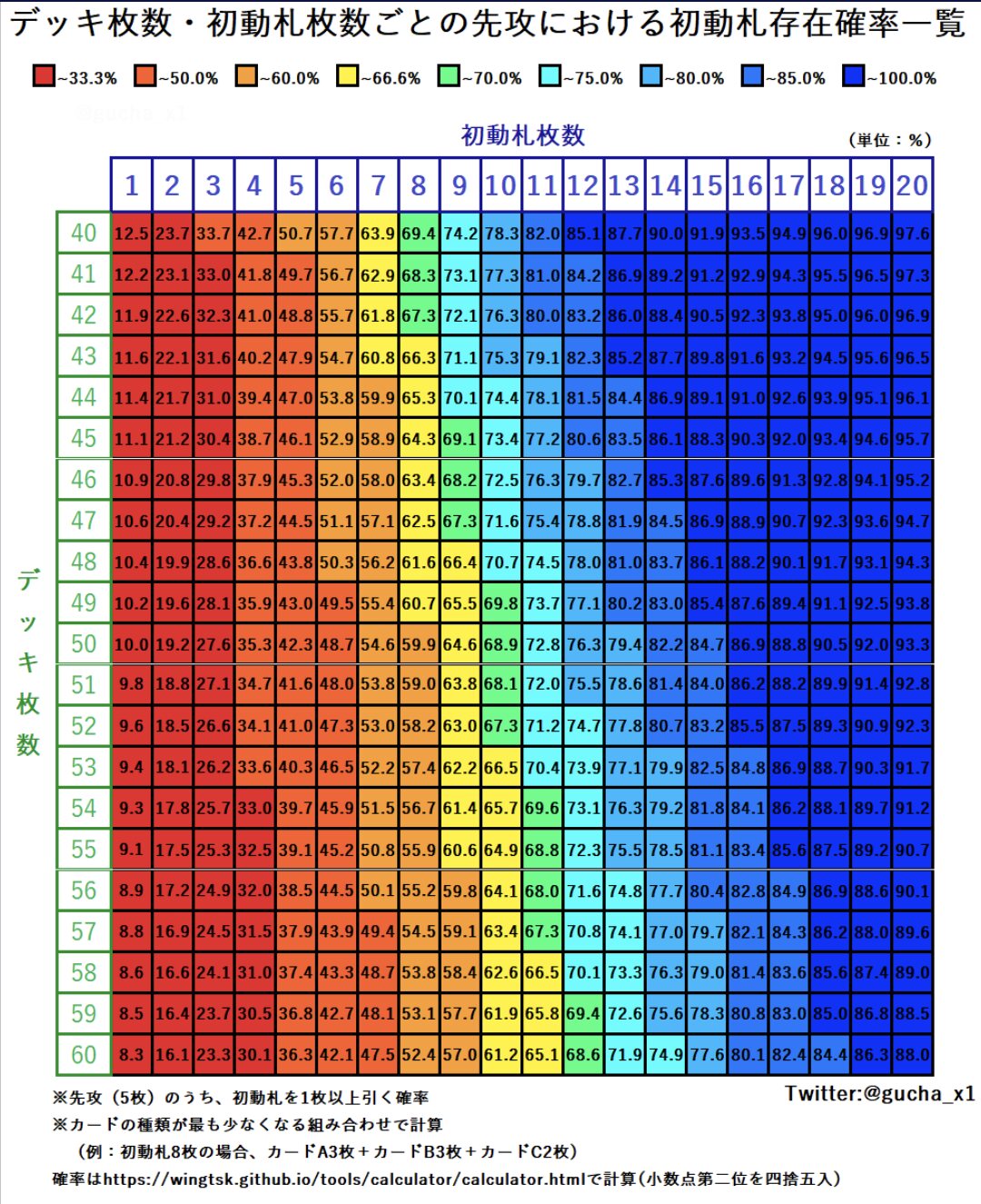 初動札を引く確率を一覧にしてみました!