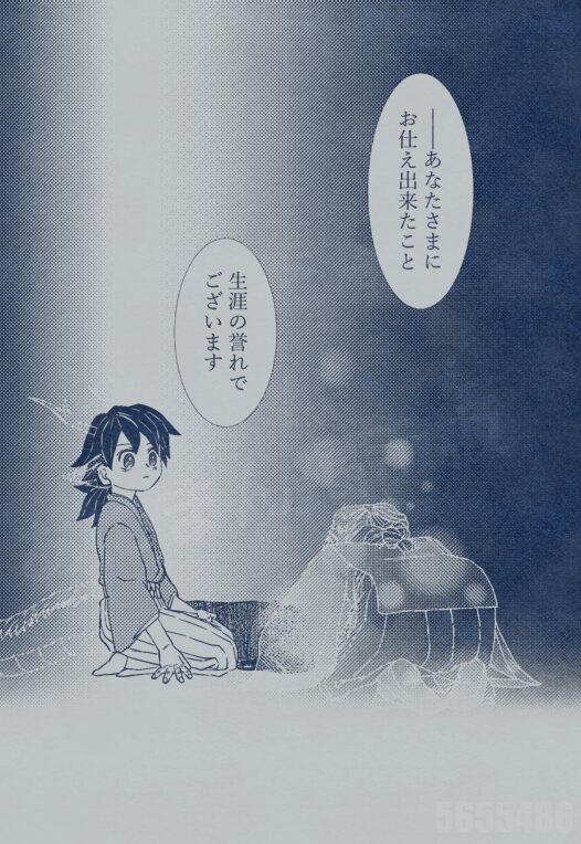 情報収集に来たマツリノカミに「義勇は鱗滝さんを天狗だと思ってるけど俺のことは人間だと認識している」「出会って数か月はまったく姿が変わらず一晩で3寸くらい一気に身長が伸びたりするほど人間のことを知らなかったのを、人間社会を渡れるくらいの常識を二人で叩きこんだ」「姉の復讐と引退した俺の想いを背負うために羽織の半分を受け継いでくれている。あいつが人間の冨岡義勇を名乗るなら俺は友としてそう接するだけ。なので詳しい背景は知らない」