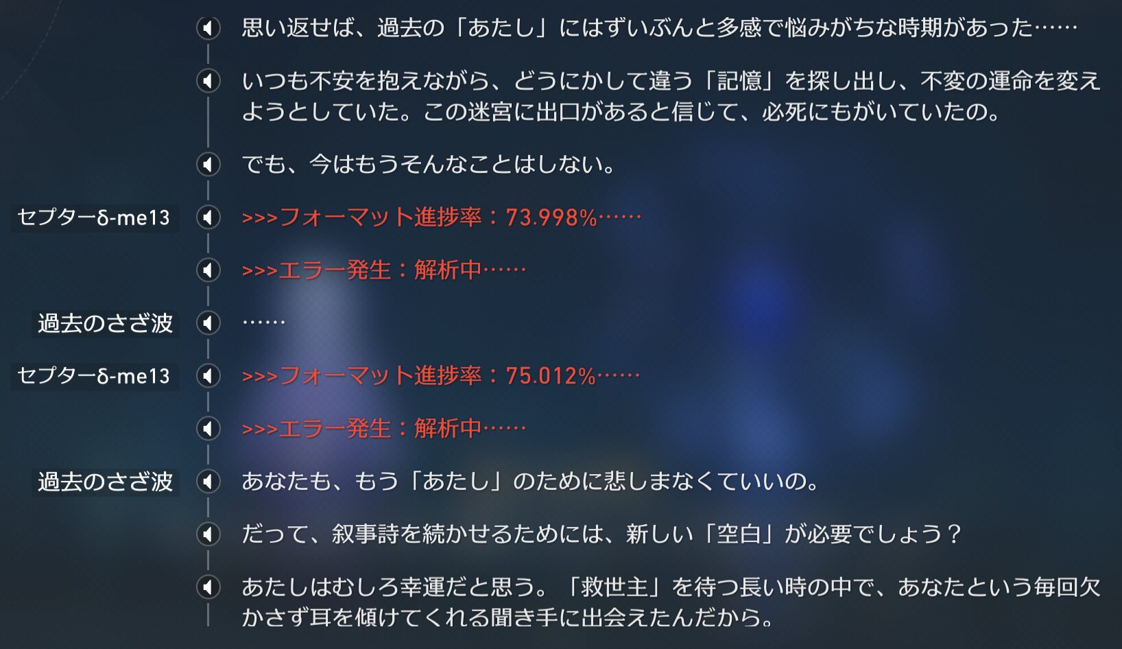 あれてっきりモブ以外の登場人物は変わり映えしないで最後は結局暗黒の潮に飲まれて終わる大まかな世界の流れの話で個人の行動を指してる訳じゃないと思ってた