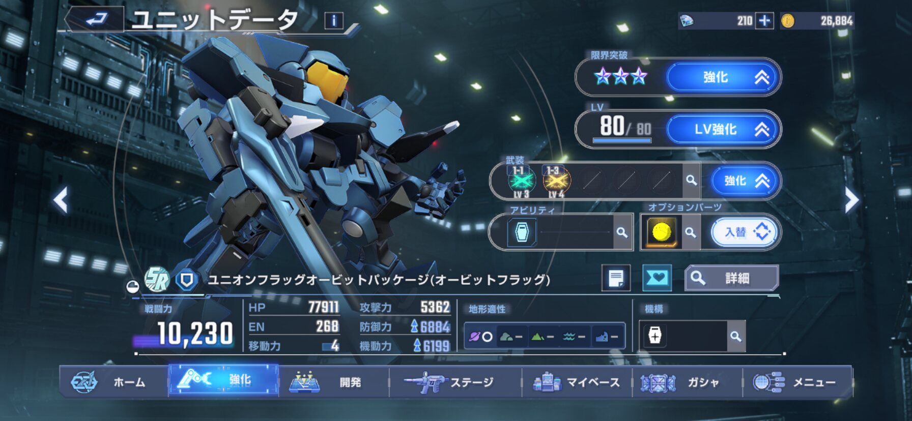 拠点突破に重点をおいたカスタマイズが施されており、既存装甲の排除など徹底された改修作業によって、ベース機体から50%以上もの軽量化を果たしている。