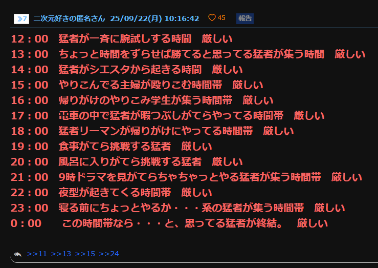 12時台は昼晩どっちもやばいイメージ