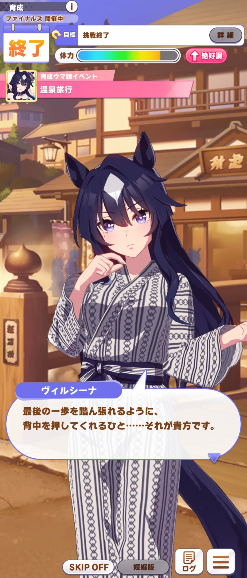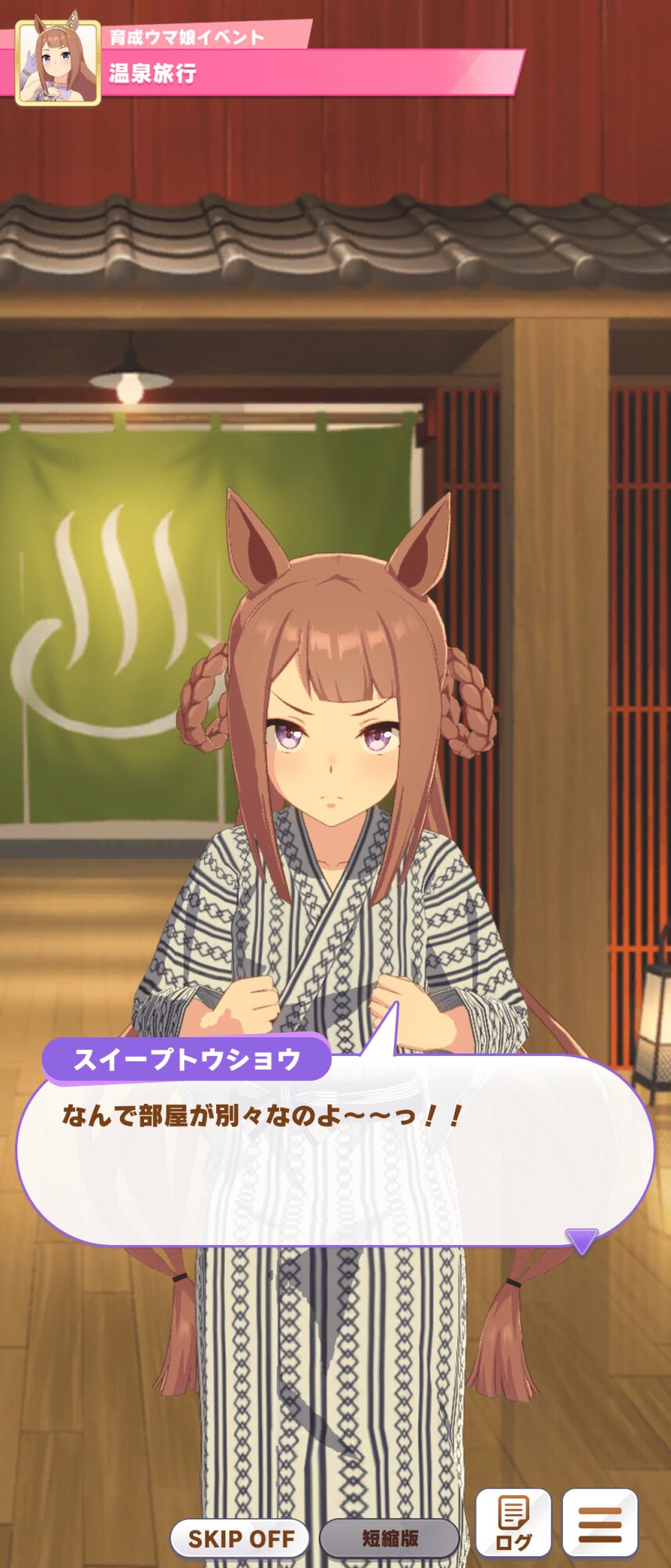 画像は昨日育成していたら温泉に行けたスイープトウショウさん