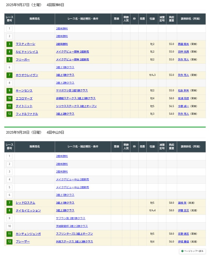 - 28※印は初コンビ(🔰は初出走)25/09/27(土) 02:03:18