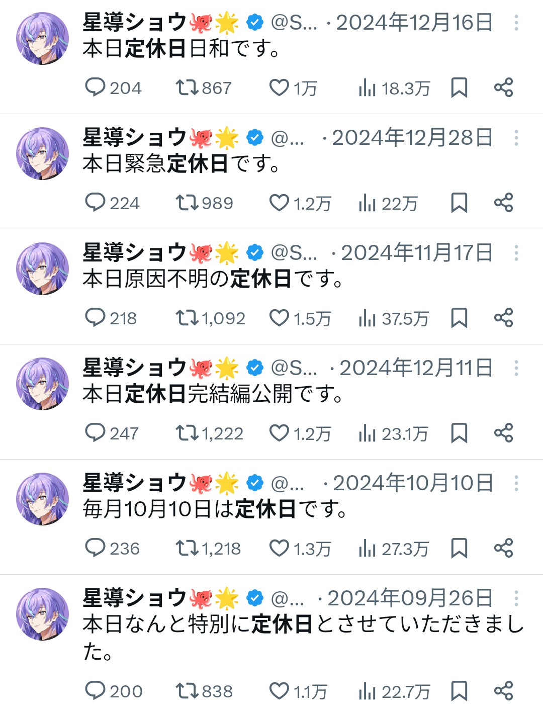 星導配信休みツイートがなくてもわざわざ次の日にしてくれるのボケとしてやってるのかもしれないけど変なところ律儀で面白い
