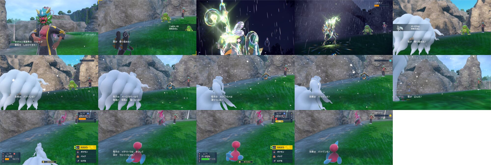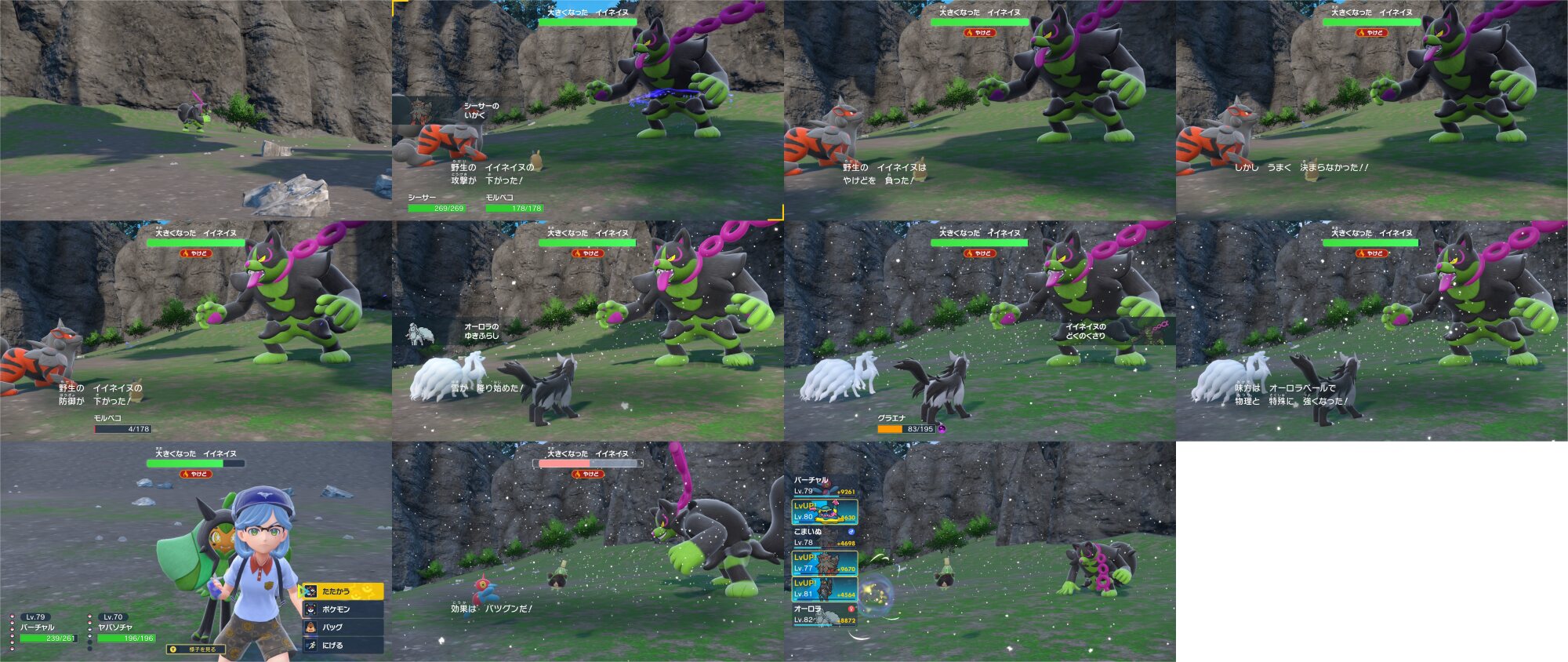 吹雪でダグトリオ・天敵バクーダ・ドダイトス・ドンファン・運が悪いナマズンを撃破してもらいオーロラちゃんのレベルが100に!