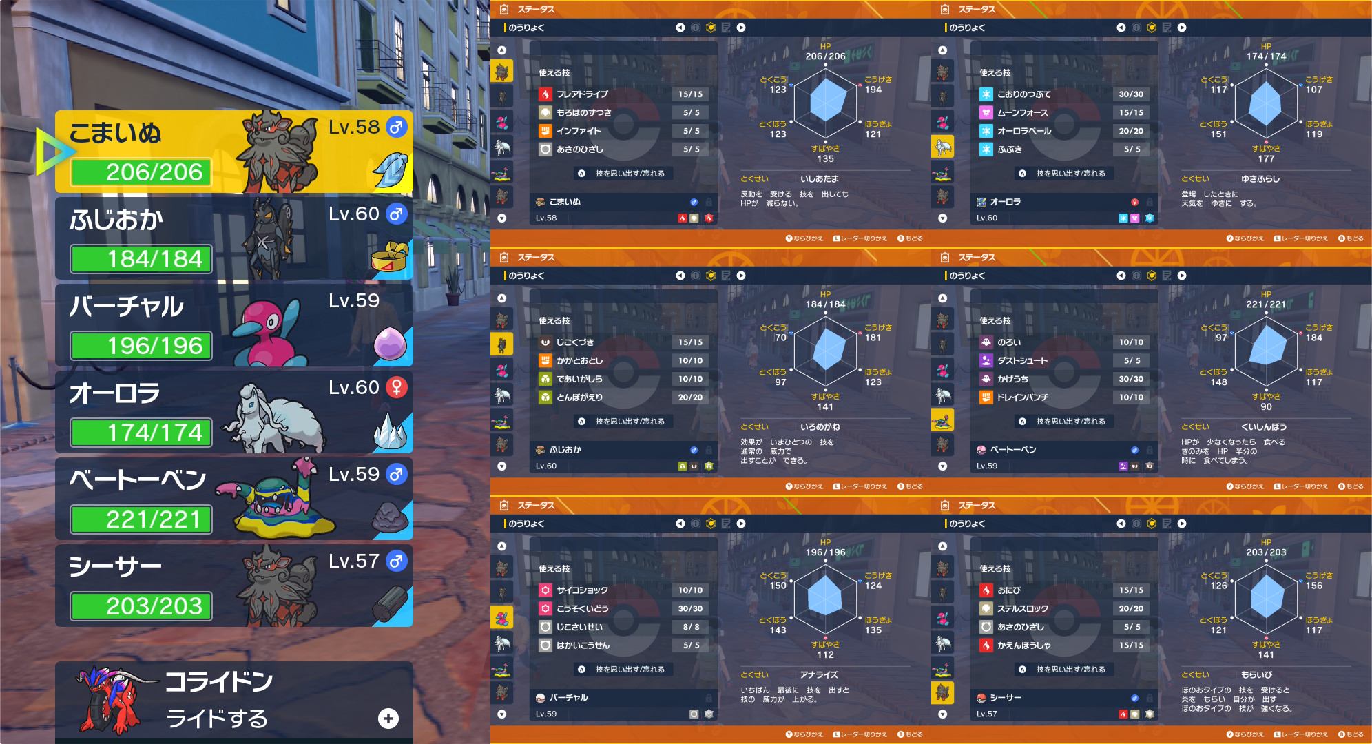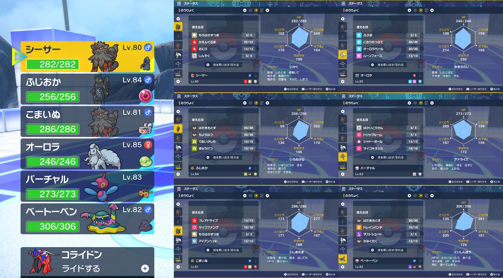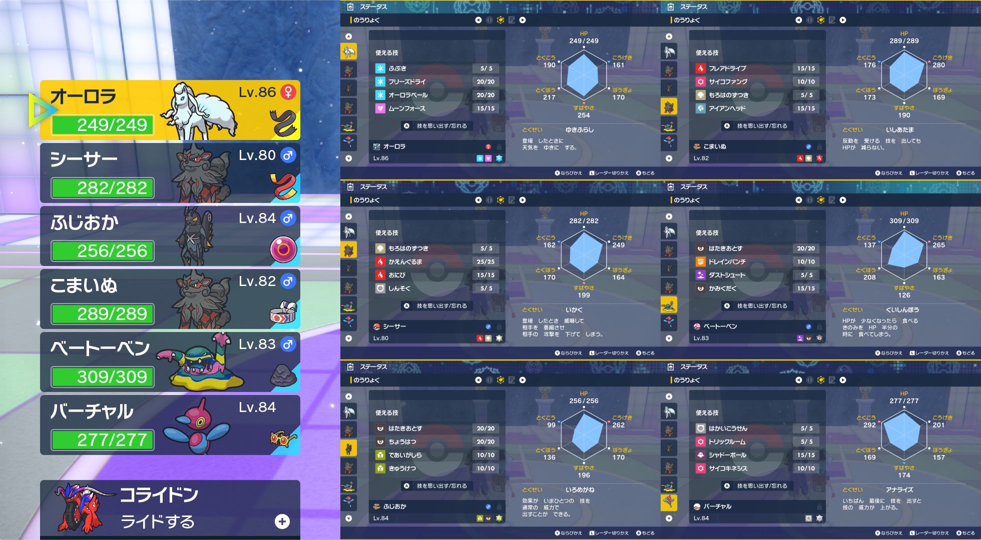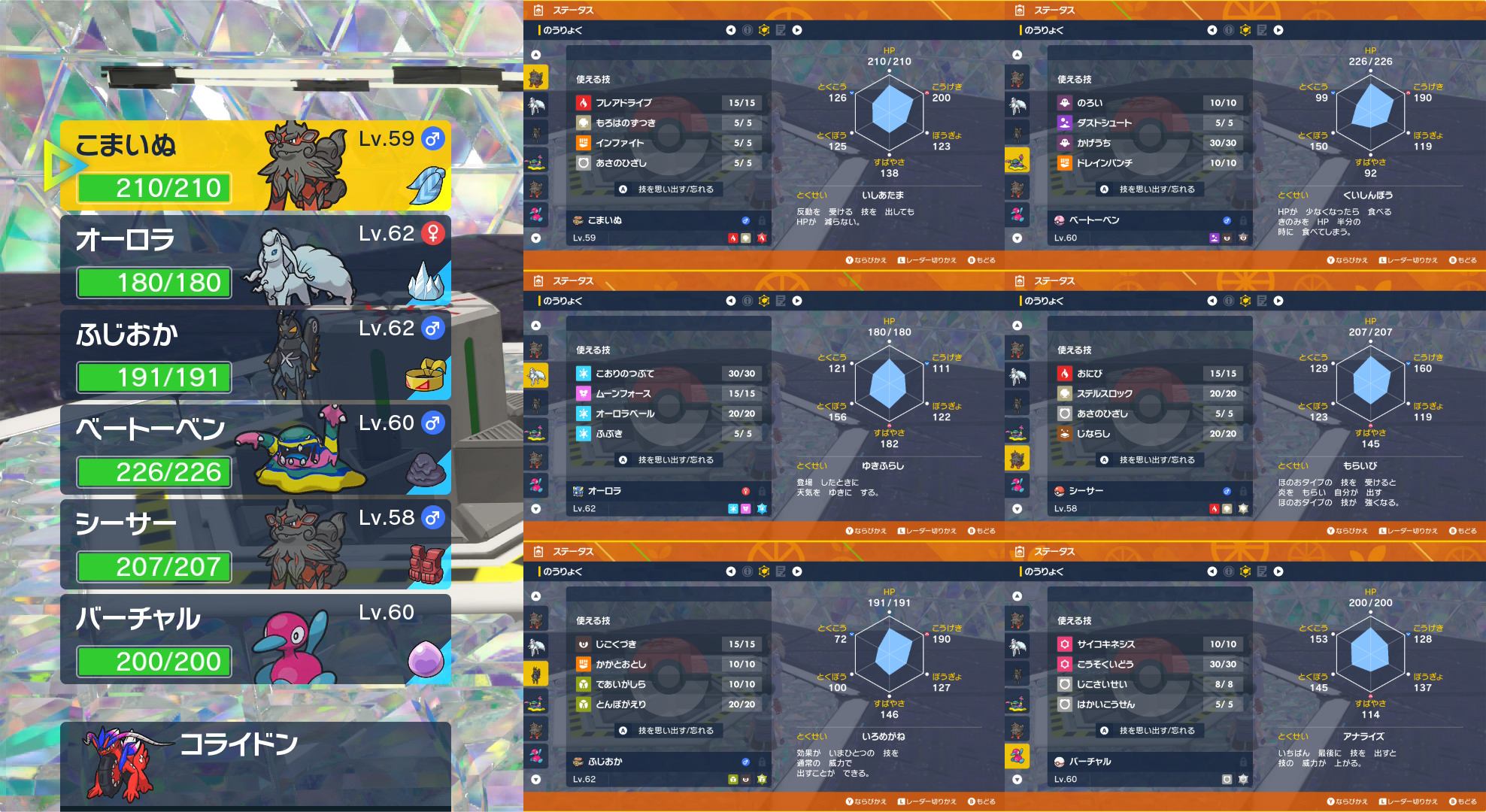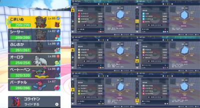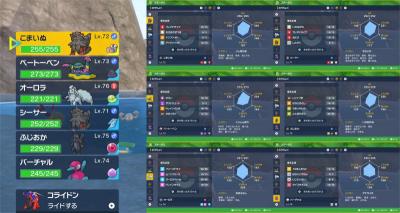 前回同様オーロラちゃんとこまいぬ君の初代リージョン&ヒスイ(正確には違うけど レジェアルにアロコン出てるので)コンビで挑みます!もちものは そのまま
