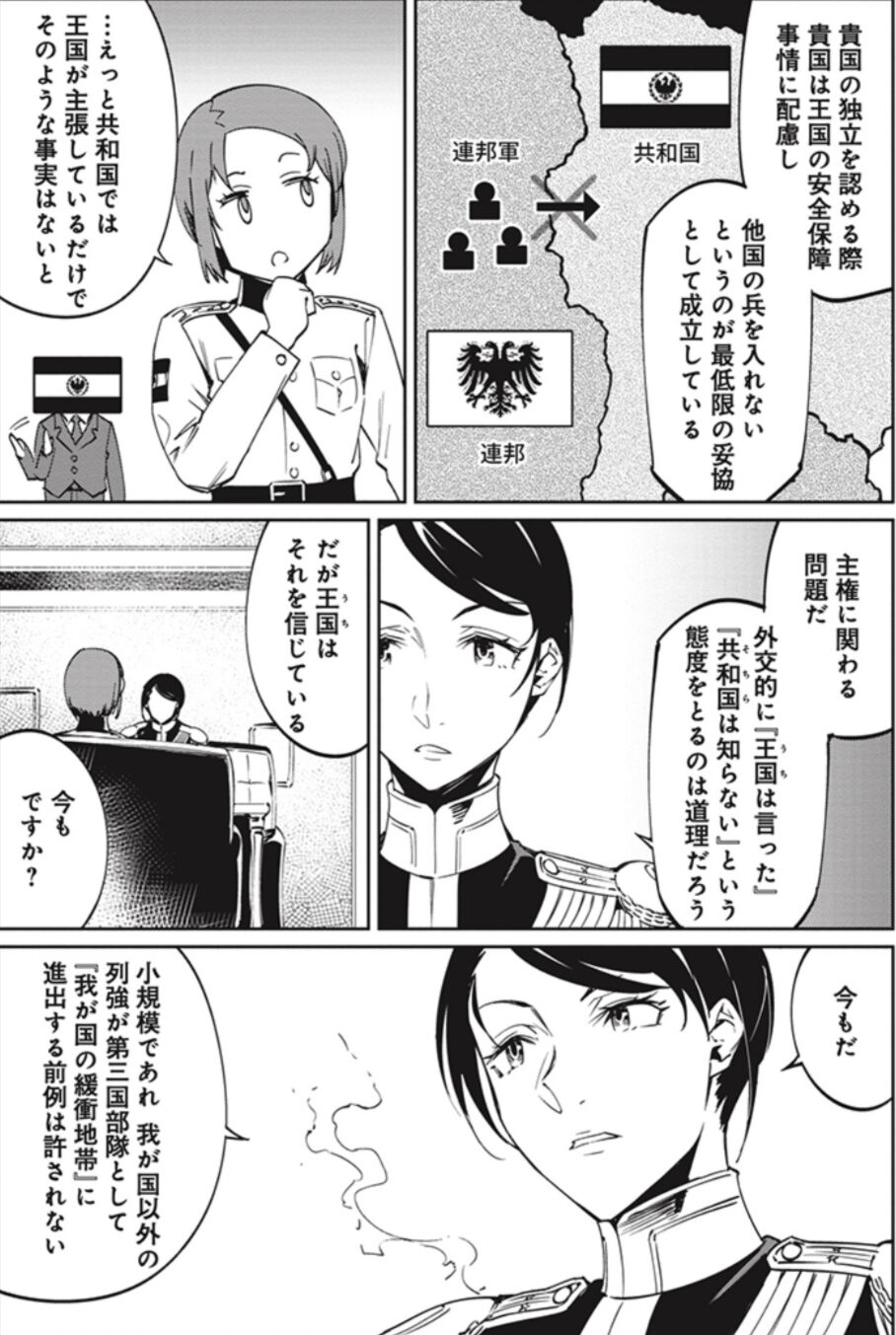 明日の敵と今日の握手を明日の敵と今日の握手を by ヤンチャンWeb。ドラゴンフライ皇国は、世界に覇を唱える『皇帝同盟』と結ぶべきだという主張の『艦隊派』、世界の現状維持を望む『協商』との友好関係を続けるべきだ、とする『条約派』の2つに分かれ内部対立を深めていた。『皇帝同盟』へ属するべき、バスに乗り遅れるな。という風向きが強くなる中、ユトランド上空の戦争で大きく戦況が変わる。結果、新品中尉・アメリアは関係が悪くなりつつある『協商』国家ブレタニケに『条約派』の正論モンスター海軍中将・ハラルドと共に駐在武官として乗り込むことに!一歩間違えば、世界大戦。国、大使館、貴族、マスコミ……あらゆるものを利用する、『英雄を必要としないため』の闘いが始まる。これは、国家の趨勢を懸けた駐在武官たちの本格外交業務戦記である!youngchampion.jp - 12二次元好きの匿名さん25/09/26(金) 23:23:33