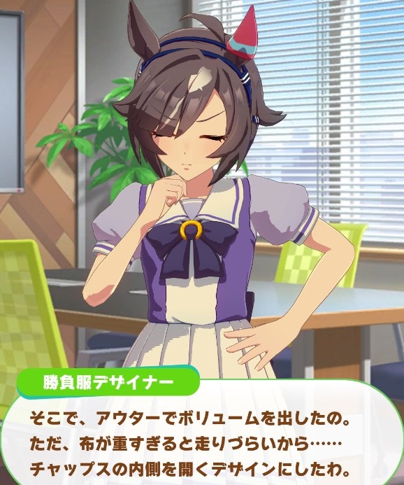 着てる奴が常識的だと勝負服の仕様も常識的なほうに引っ張られて、着てる奴がファンタジーだと勝負服の仕様もファンタジーになっていくんでしょ