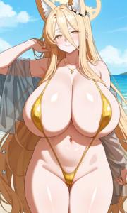 いやぁ、最初は制服姿とかにしようとしたんですが、最胸サツキの人さんや嫁アビドスさんの様に、上手く生成いかなかったので、結局いつものマイクロビキニ姿です……まだまだ未熟で申し訳ないですね。