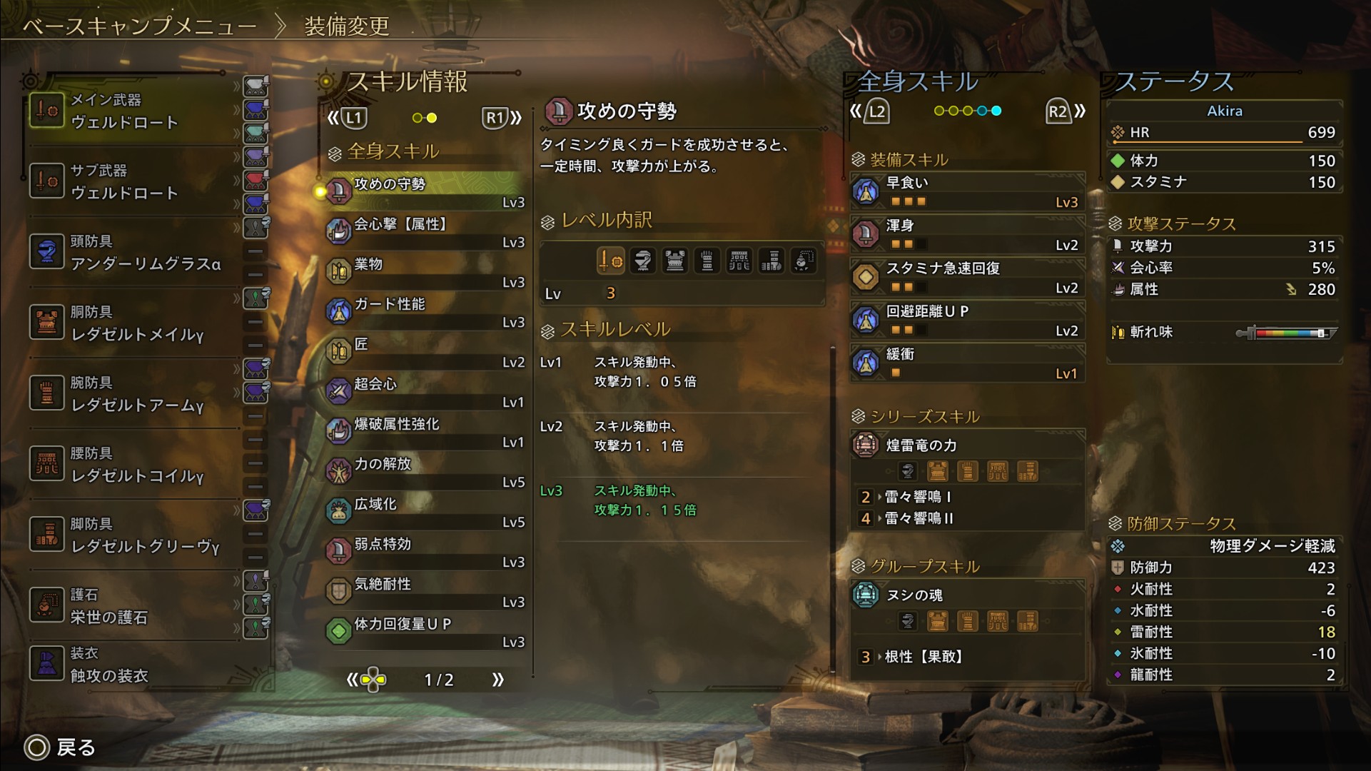 はい 普通にラギ歴レタフ装備をちょうイジった方がスキル構成が綺麗にまとまった(追伸文字)