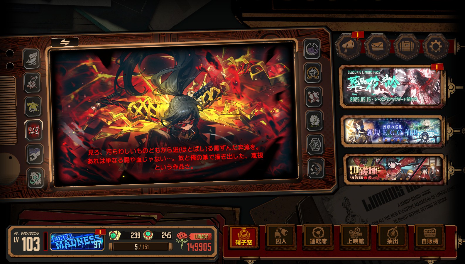 来年再来年もアークナイツとコラボして全囚人にオペレーターE.G.O.がほしいのが俺なんだよね