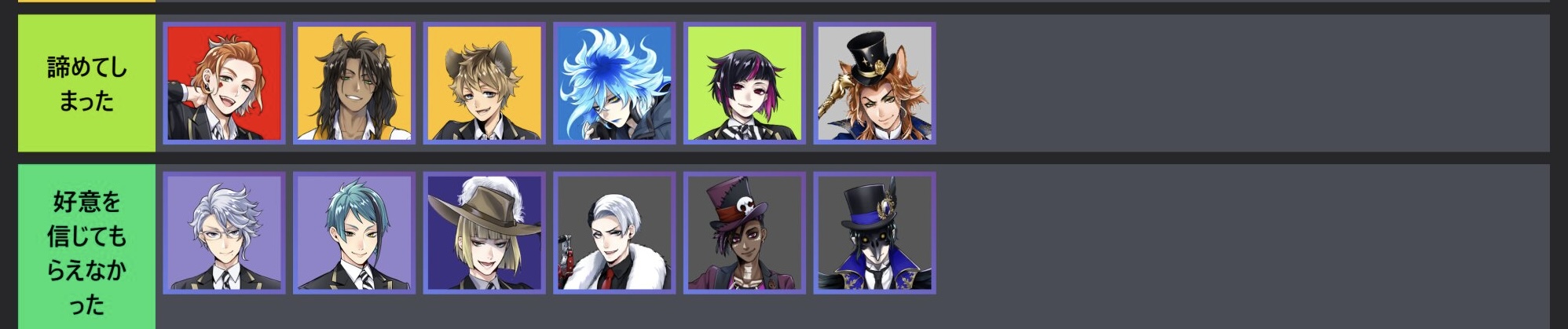 一部のNRCの男は監督生を好きになって告白せずにいるのが多そうなのと騙したり悪いことをやらかして友達としては信用されてるけどそういう意味では信用されてない人も中にもいそうなので頑張って欲しい