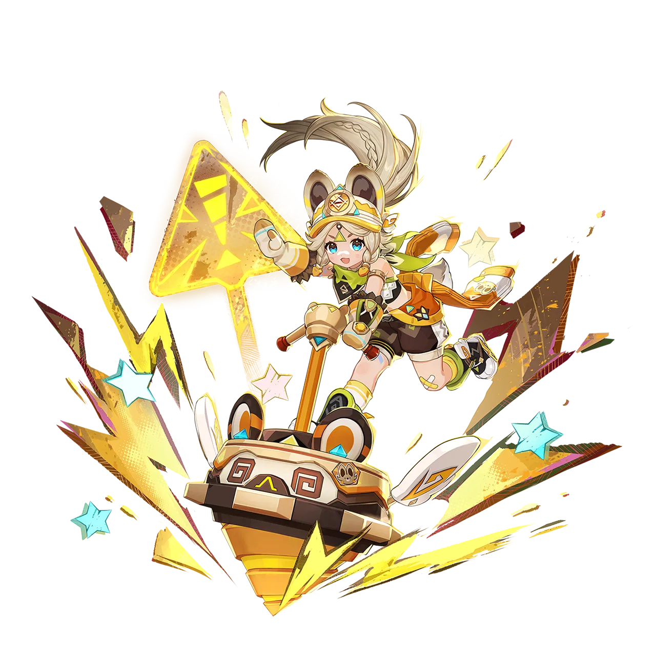 彼女は岩属性の槍キャラクターで、戦闘ではドリルの「ぐるぐるコマちゃん」を使い、攻撃します。