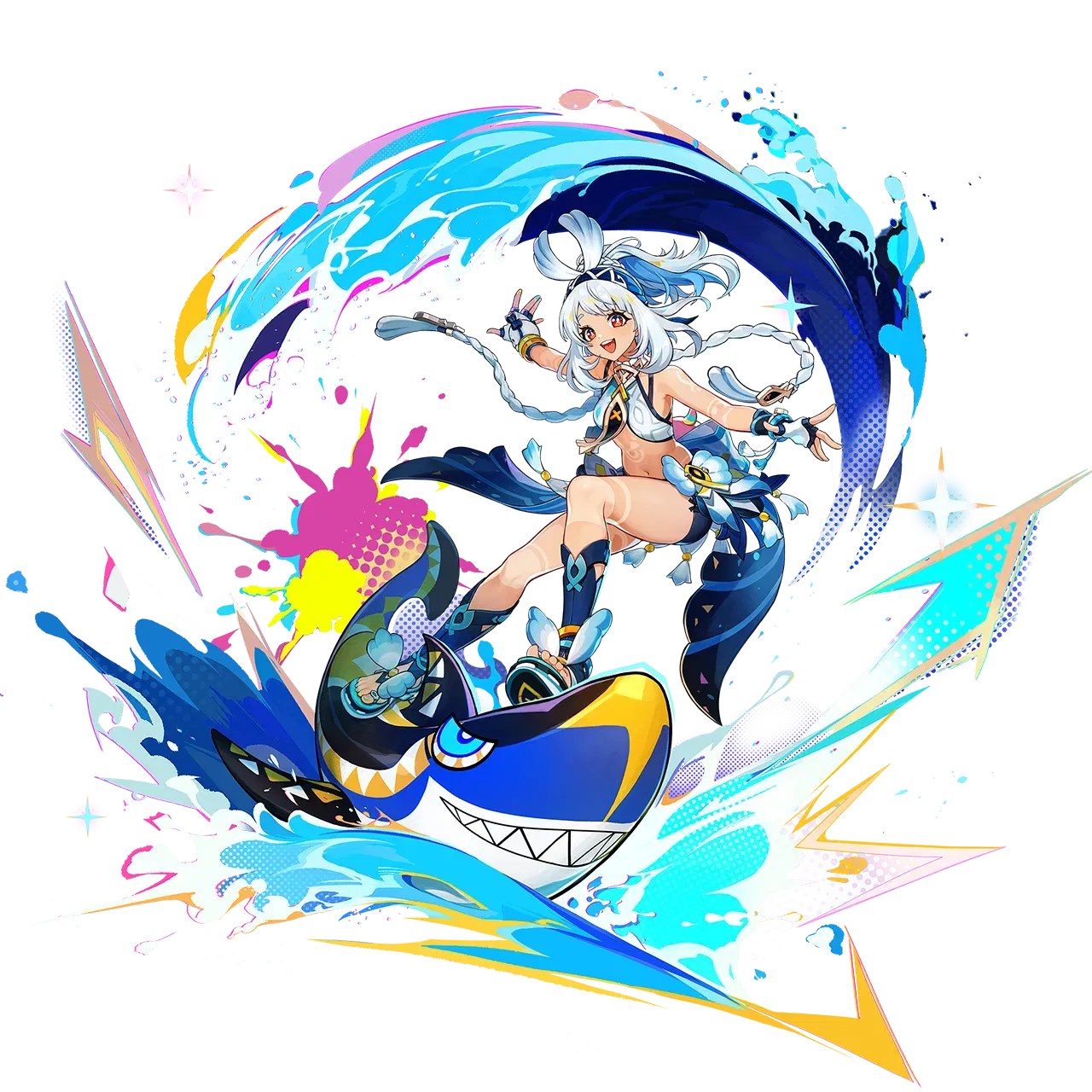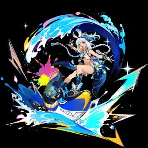 彼女は水属性のアタッカーでサーフボード「ざぶざぶサメくん」に乗り、敵に突撃します。