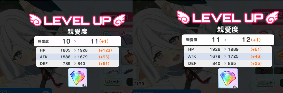 10の位を経ると基礎的な向上値は増加するけど最初の1回はそれに加えて2倍近く上がるってことも考えられる