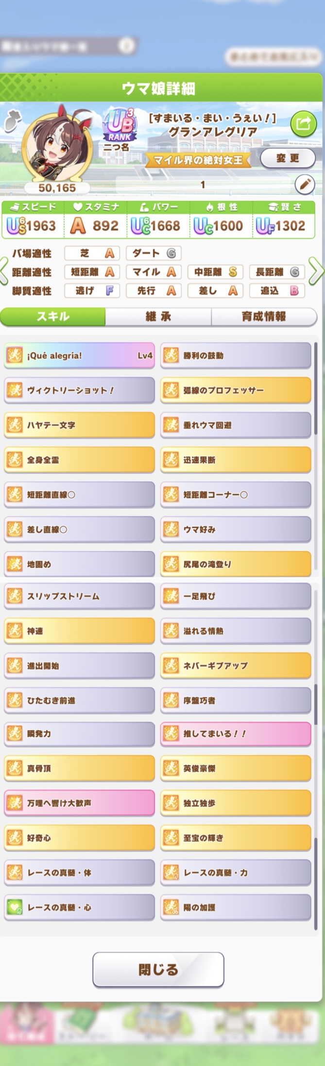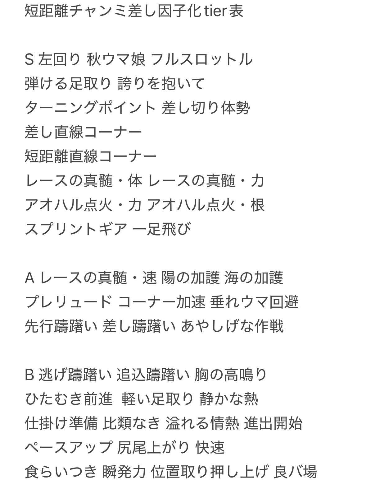 今日試しに短距離育成してみたらスキポ1000余ったから考えるのやめた