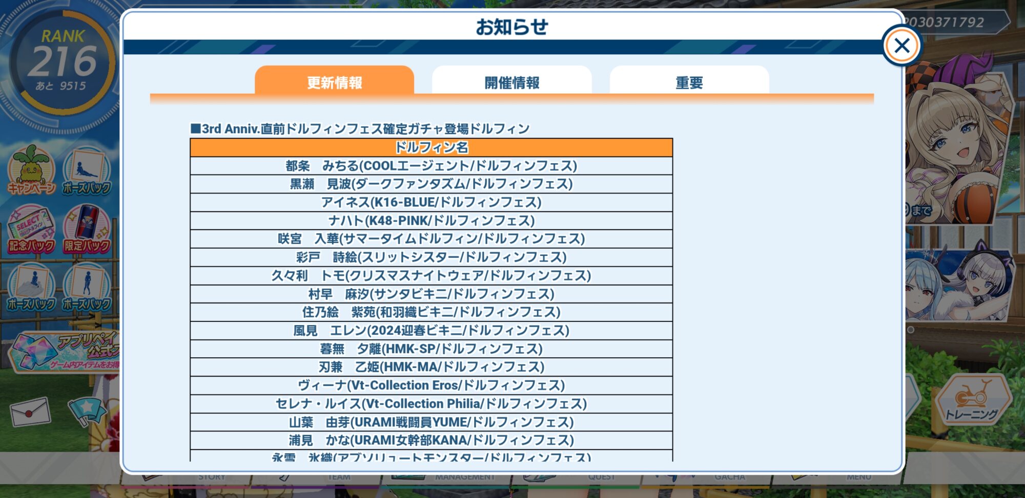 現時点で親愛度を上げれるドルフィンの総数は30名
