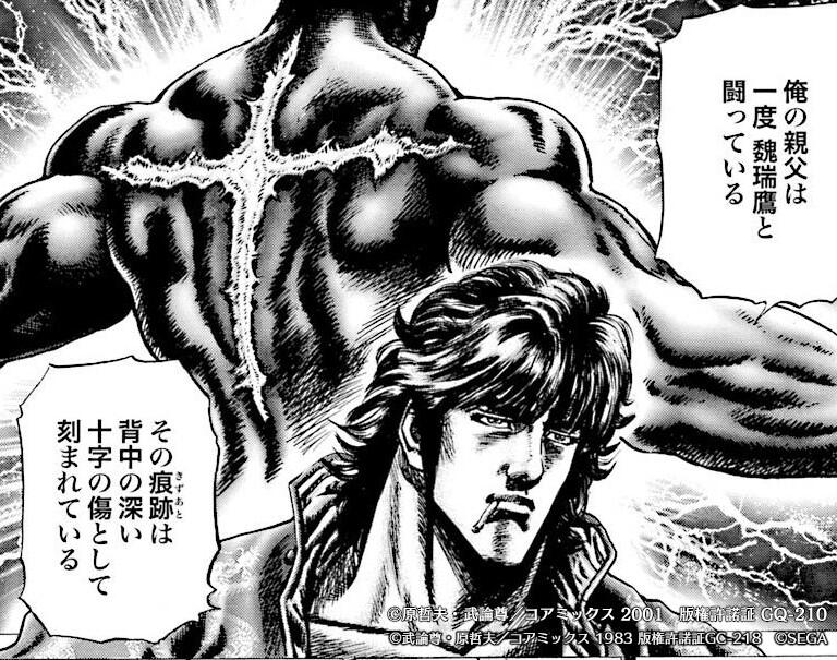 西斗の技を全て奪ったうえ西斗の人達皆殺しにしましたは作者も何とか後で擁護しようと西斗の娘と愛し合って子供作ってたとか、いろいろエピソード作ってみたけど、余計北斗神拳の創始者が最低な人間になってて、最終的にフォロー諦めて唐突にヤサカが憎しみ捨てて、エリカに申し訳ないことしたと言い出したな