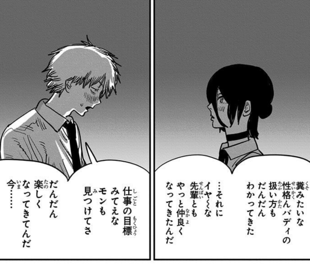 事前にそれなりに心開いてたデンジに「一緒にデビルハンターやらねぇ?」って持ちかけられて「俺ちゃん子供のサイドキックは募集してないんだよね」みたいに断ってた下りが欲しいね…