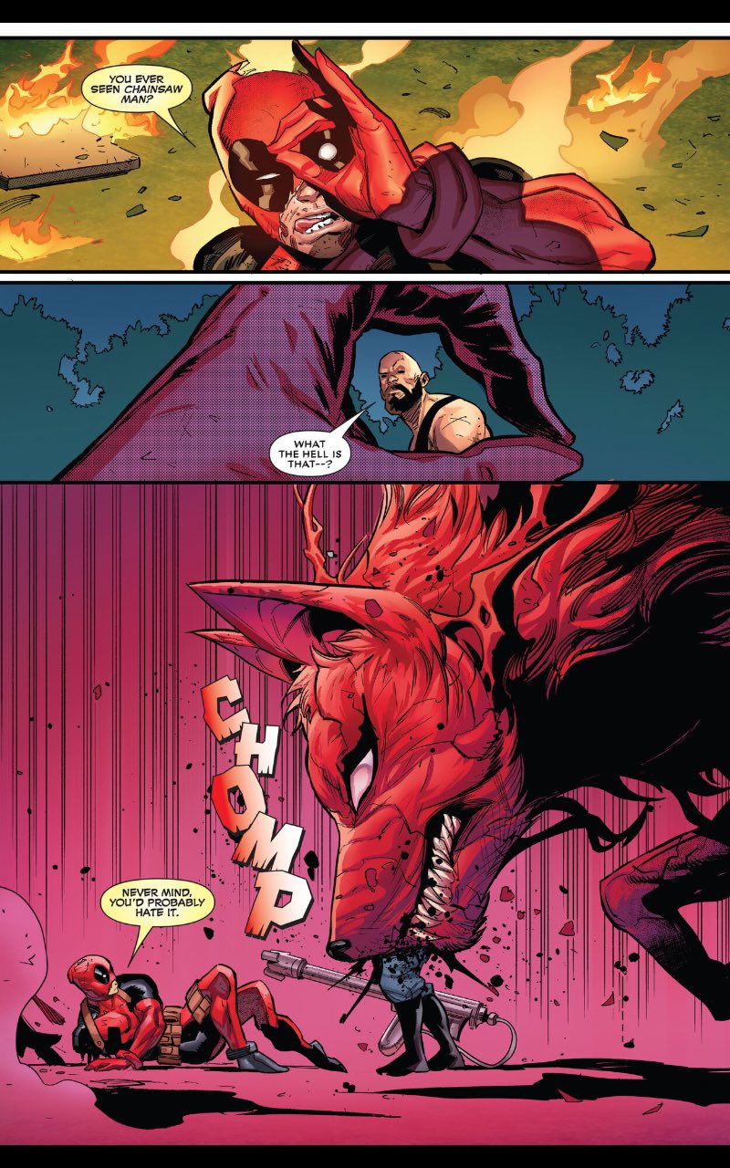 デンジとビームの人鮫合体フォーム見てなんか映えの方向性が俺ちゃん寄りでこれ好きってソムリエみたいな反応してるデップー
