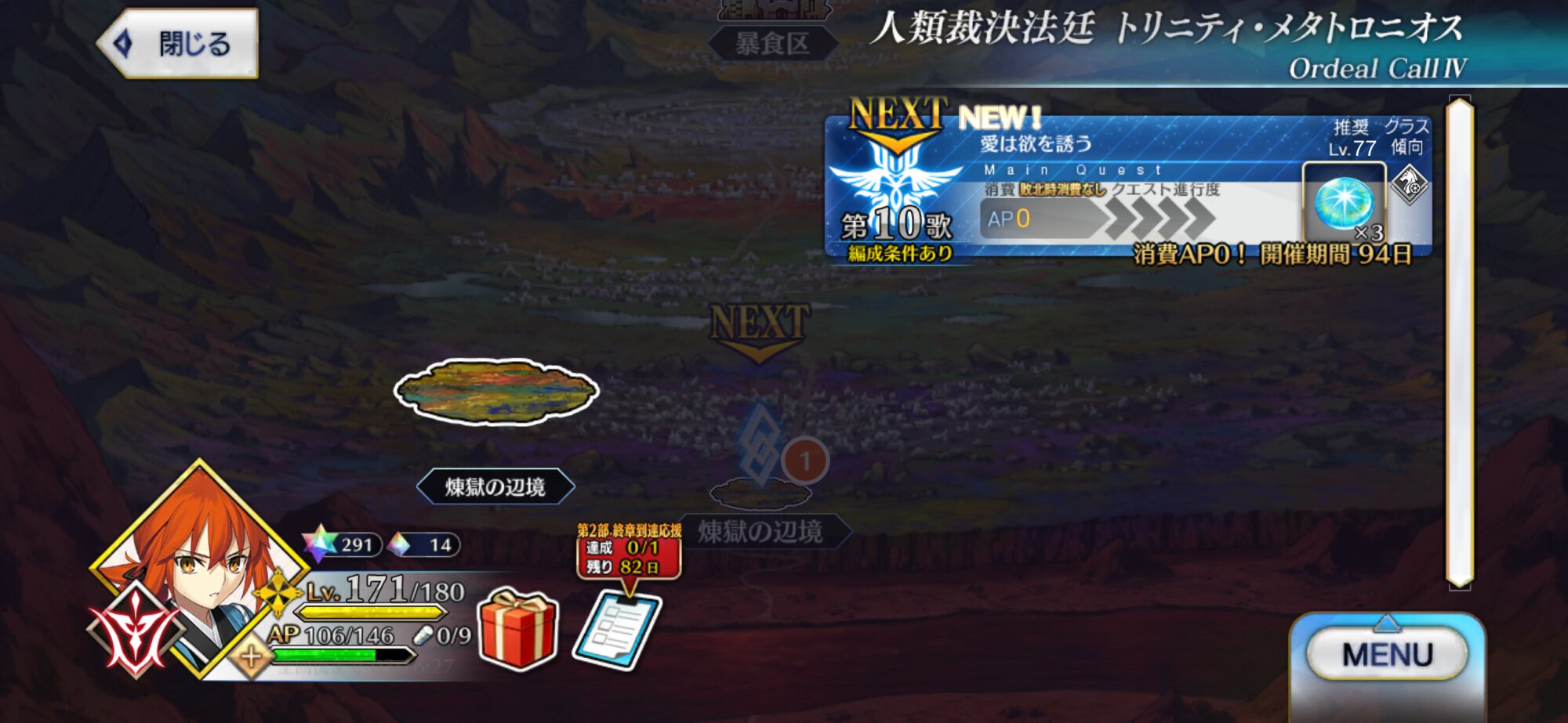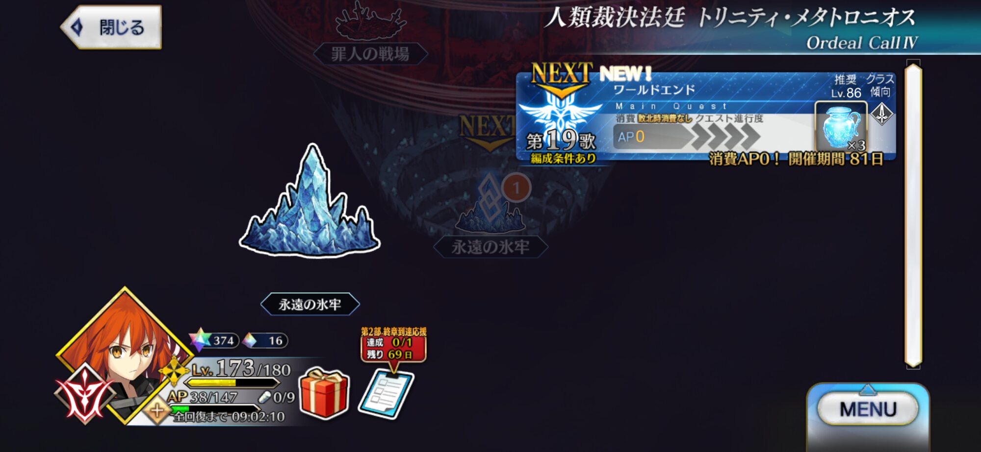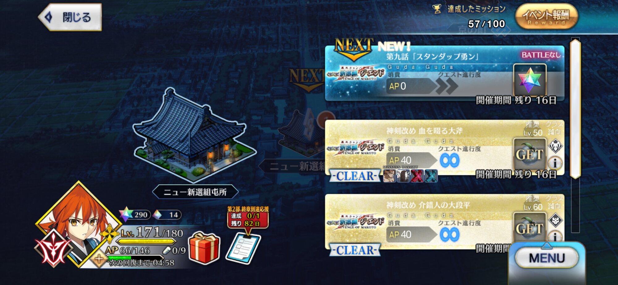 現在はぐだぐだイベント第9話と奏章IV8歌を同時並行で進めております!なるべく奏章IVを進めておきたい……