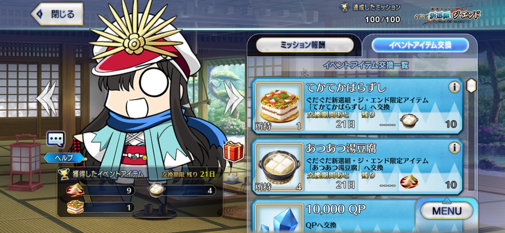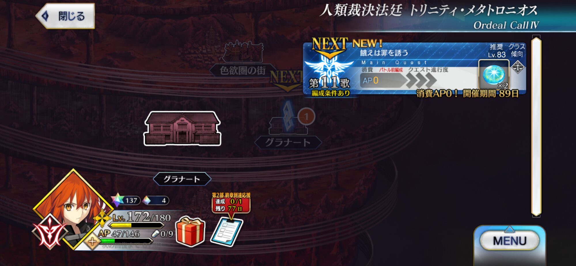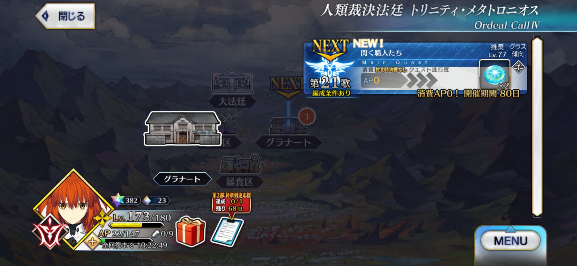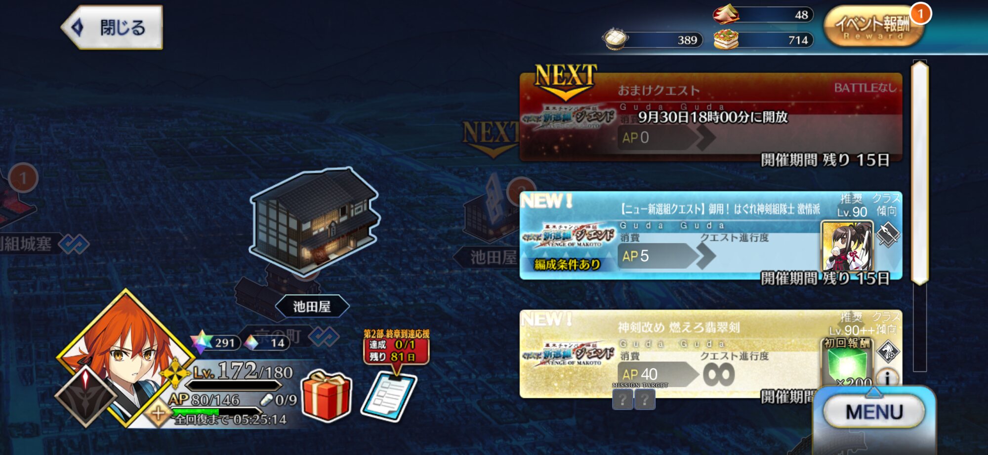 現在はぐだぐだイベント第9話と奏章IV8歌を同時並行で進めております!なるべく奏章IVを進めておきたい……