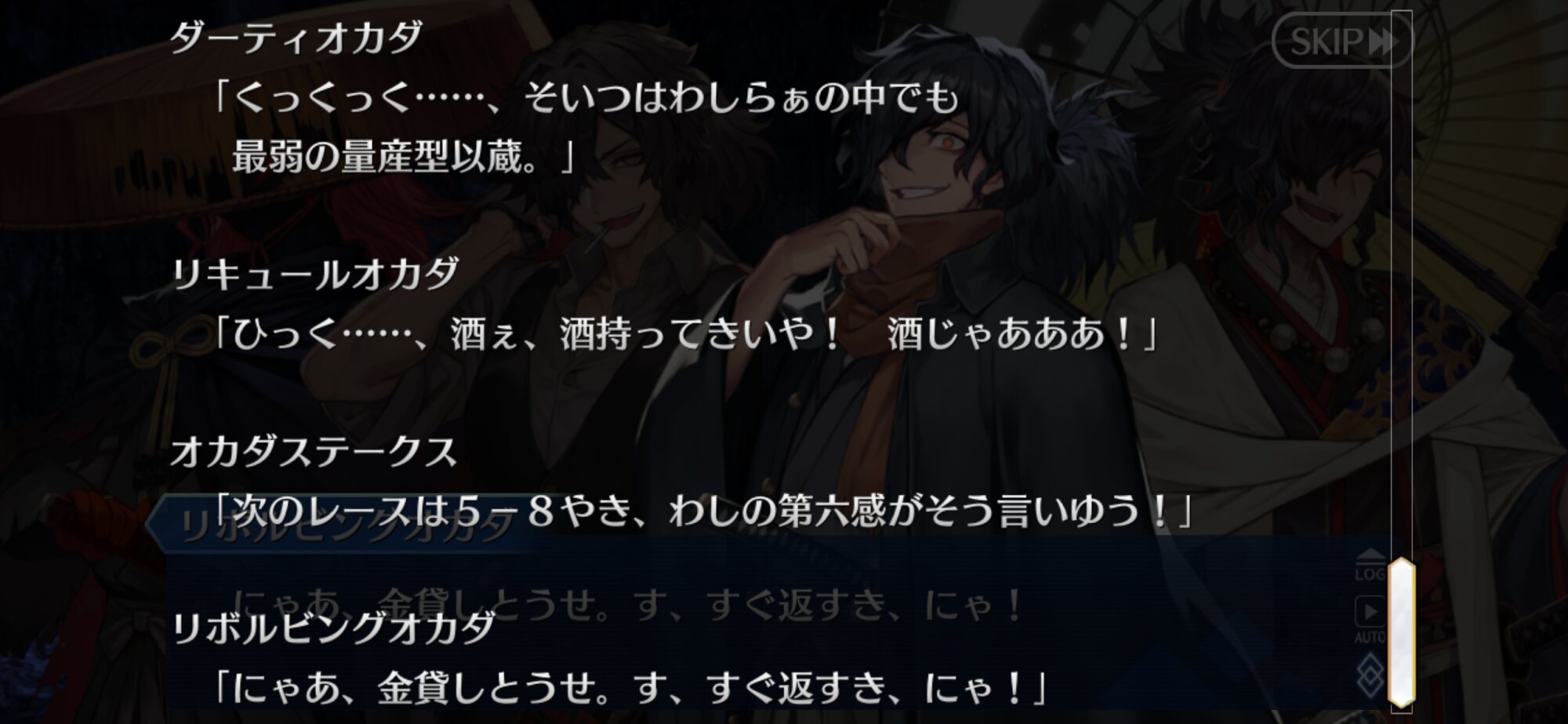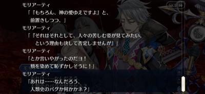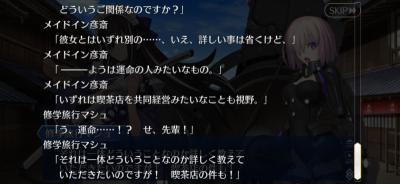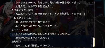さて今日は夜から再び奏章IVに戻ろうかと思います!というのももうアサシン全員絆6自体は達成しておりまして…まぁ新たに絆8のミッションが出ましたが。ただ流石に全員絆8は道のりが遠い…のでもうね、ガンガンメインストーリーを進めたいのです。出来ればハロウィンまでにやりたかった…けど22日から何でもうほぼ確実に無理なんだよな…まぁきっとギャグたっぷりだと思うんで同時並行にやれば傷も少しはマシになる……と思いたい…!