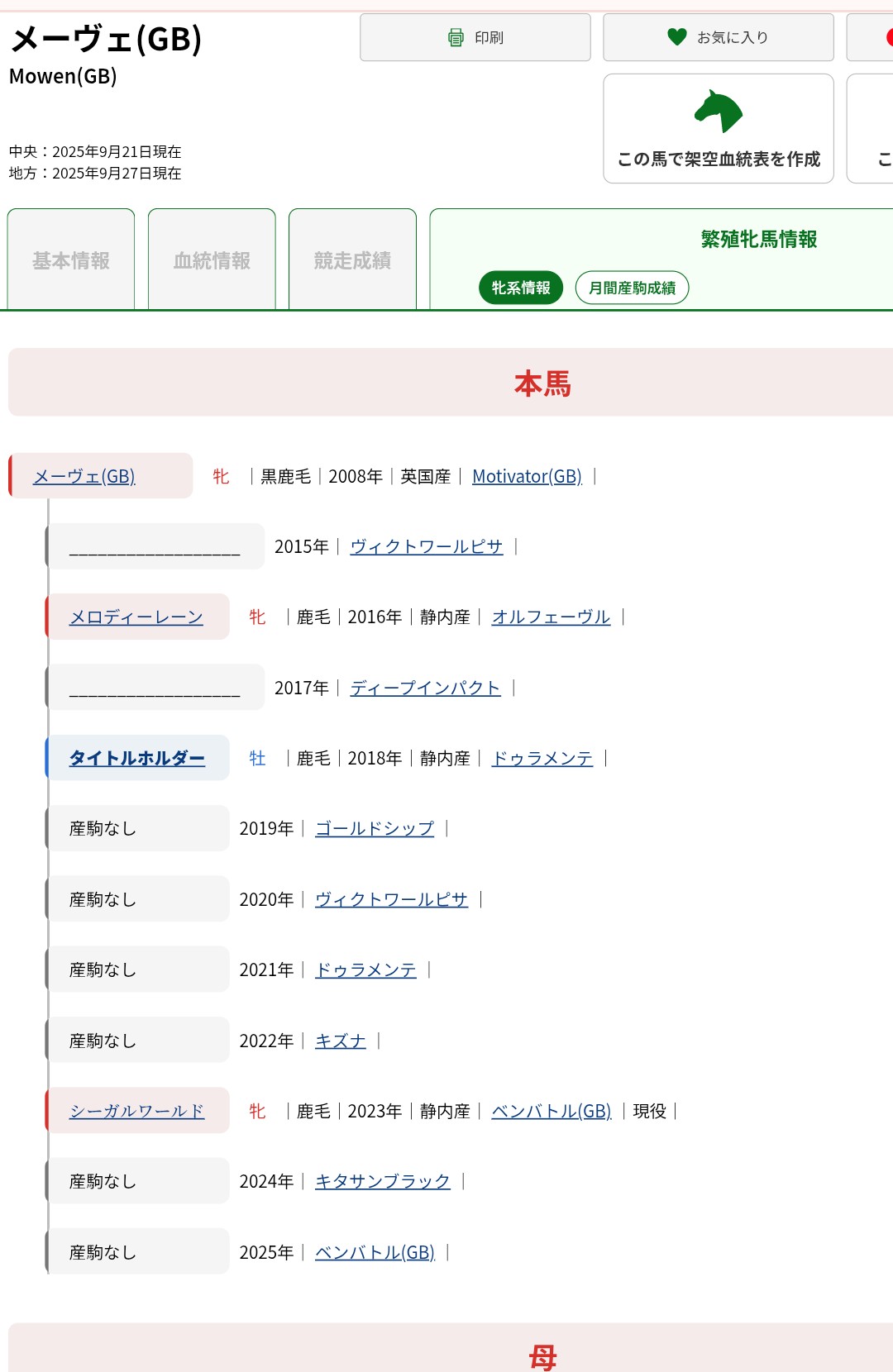 性別:牝馬