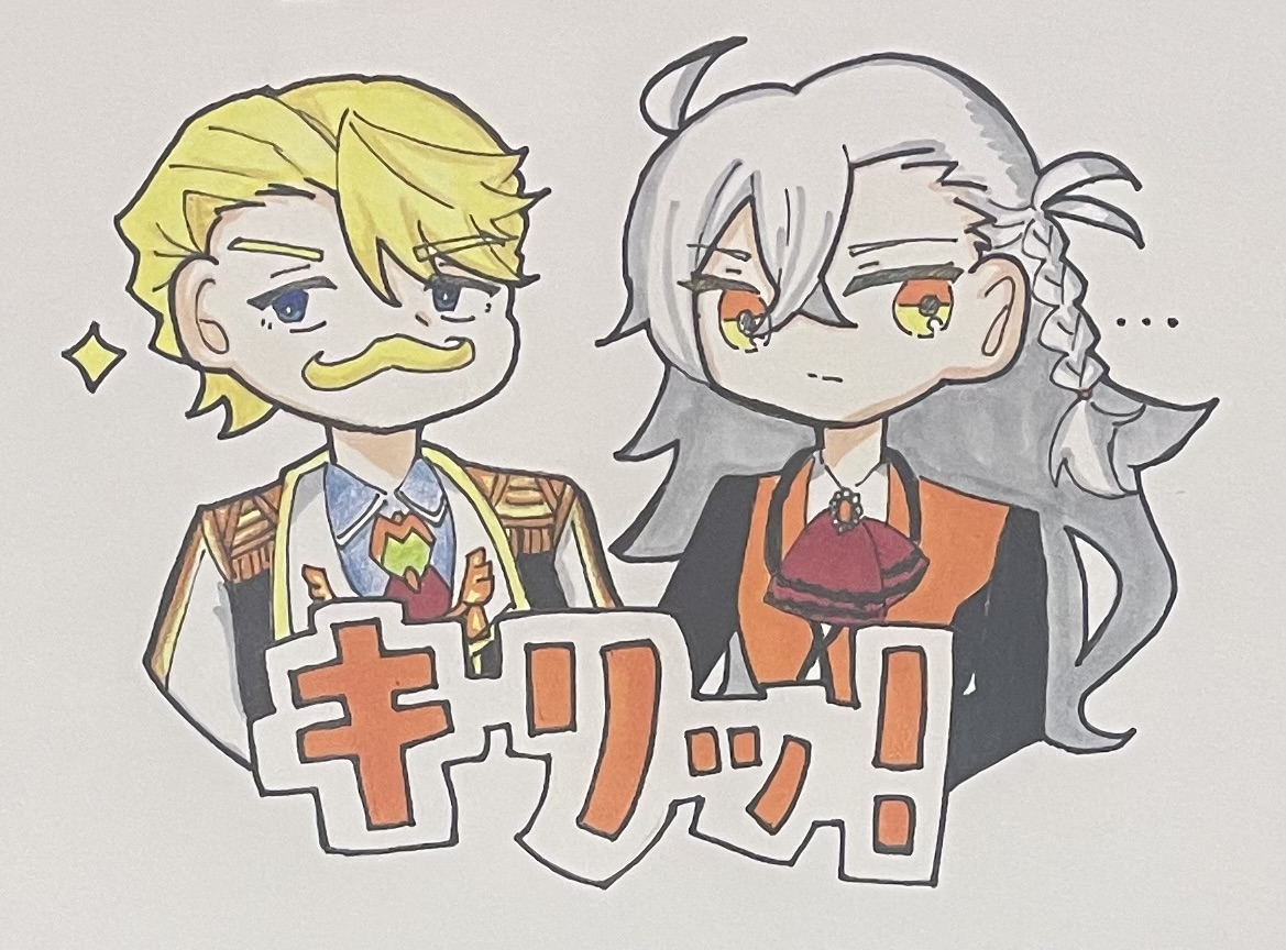 ラストはもちろんこの2人!描いてる途中でお互いの瞳の色を合わせると某共犯者の色になることに今更気づいて、急遽星を付け足しました