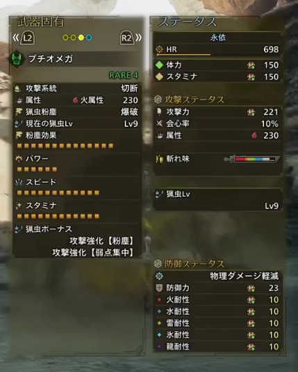 プチオメガ、オメガ武器装備で見た目変わるんじゃなく猟虫で別枠なんスか