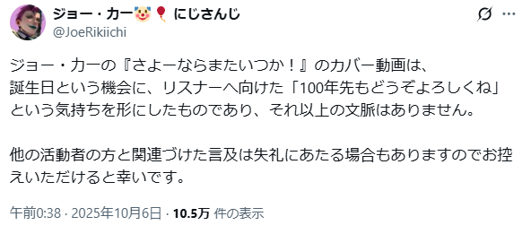 単純に収録とか仕事の可能性もあるが - 198二次元好きの匿名さん25/10/08(水) 19:16:14